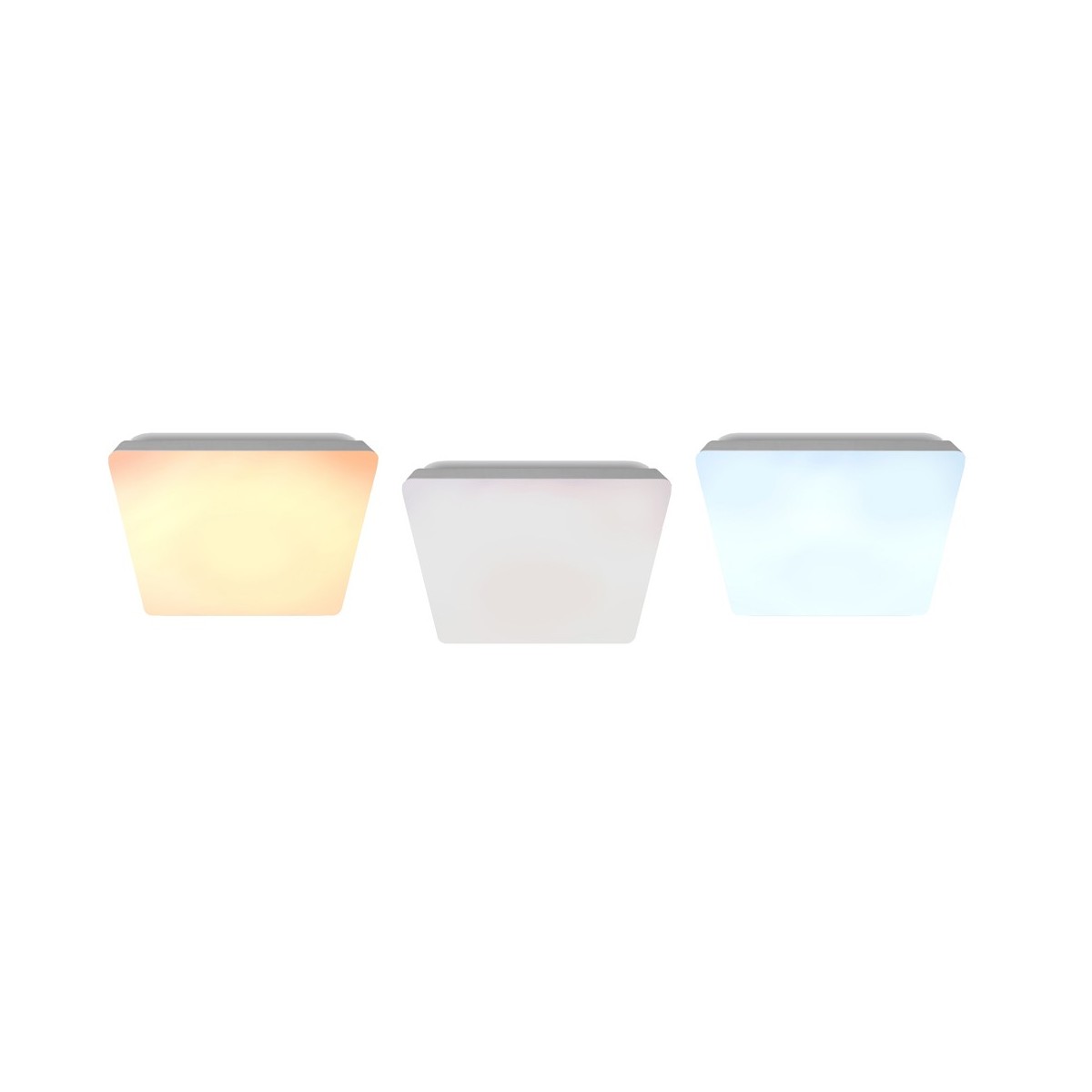 Panneau LED à surface carrée avec 72w dimmable, qui permet de réguler 3 températures de couleur, de 2700 à 6500K. Télécommande incluse.