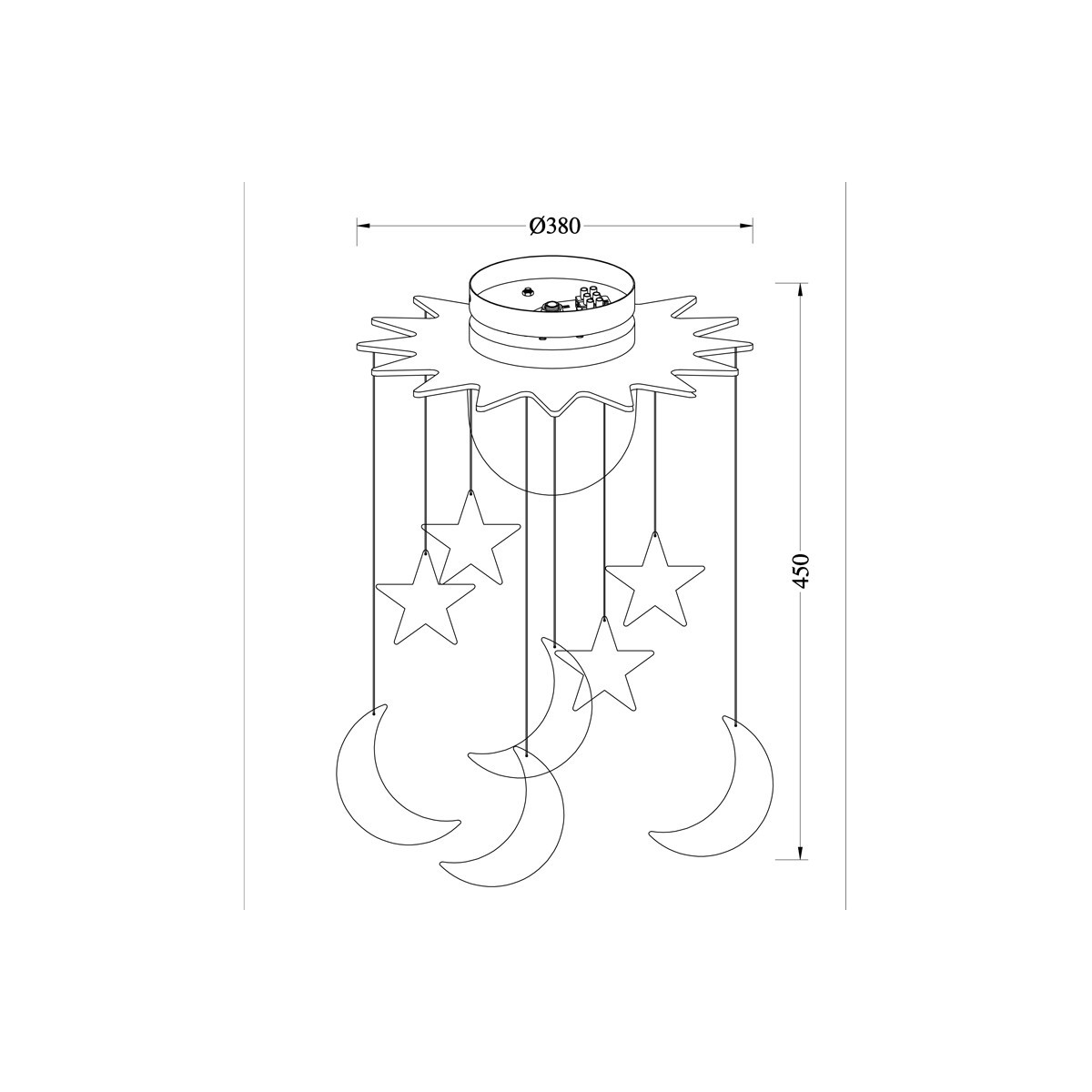 Panneau de plafond pour enfants avec diffuseur en verre et pendentifs de lune et d'étoiles en plastique .