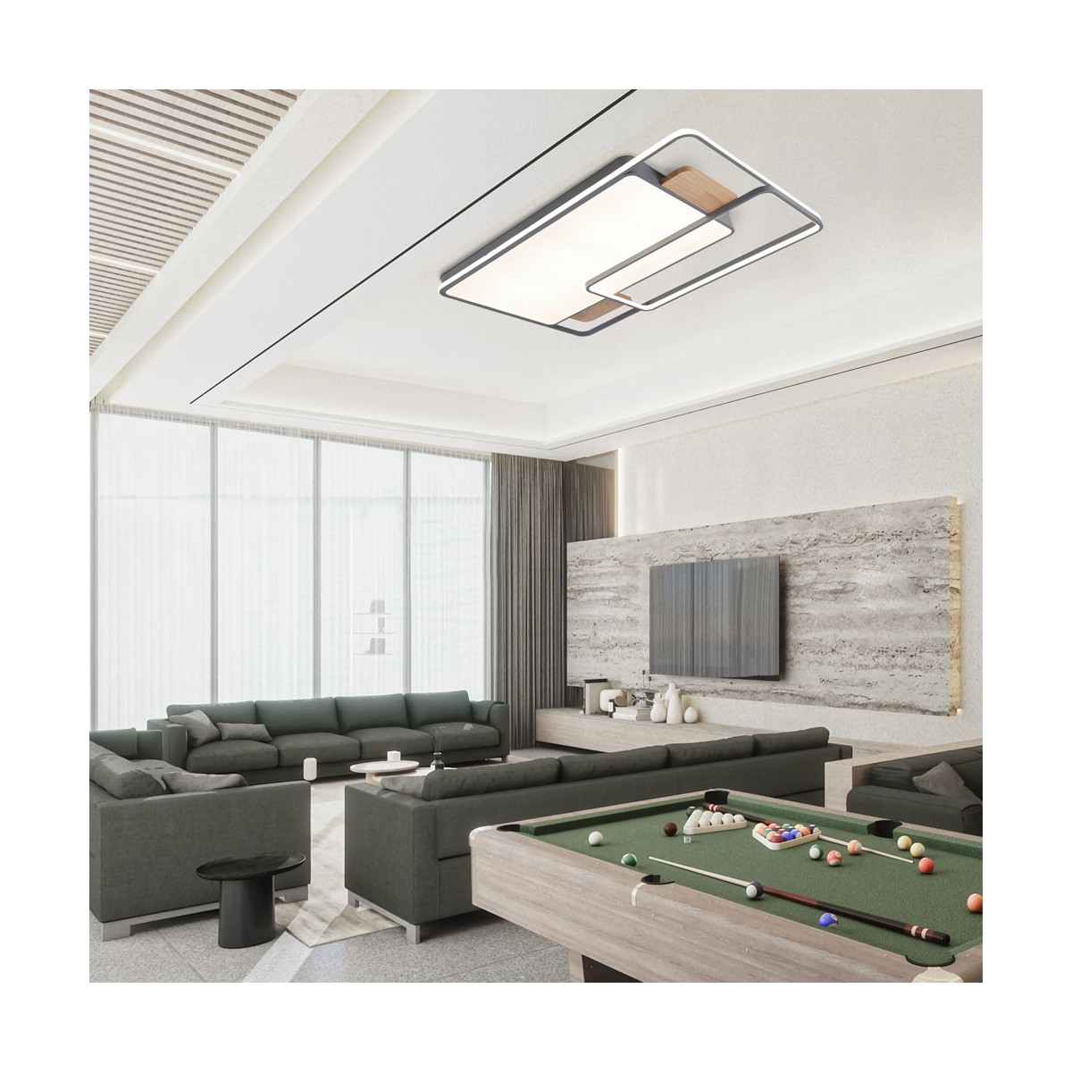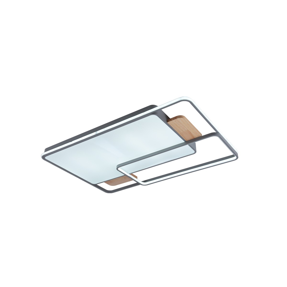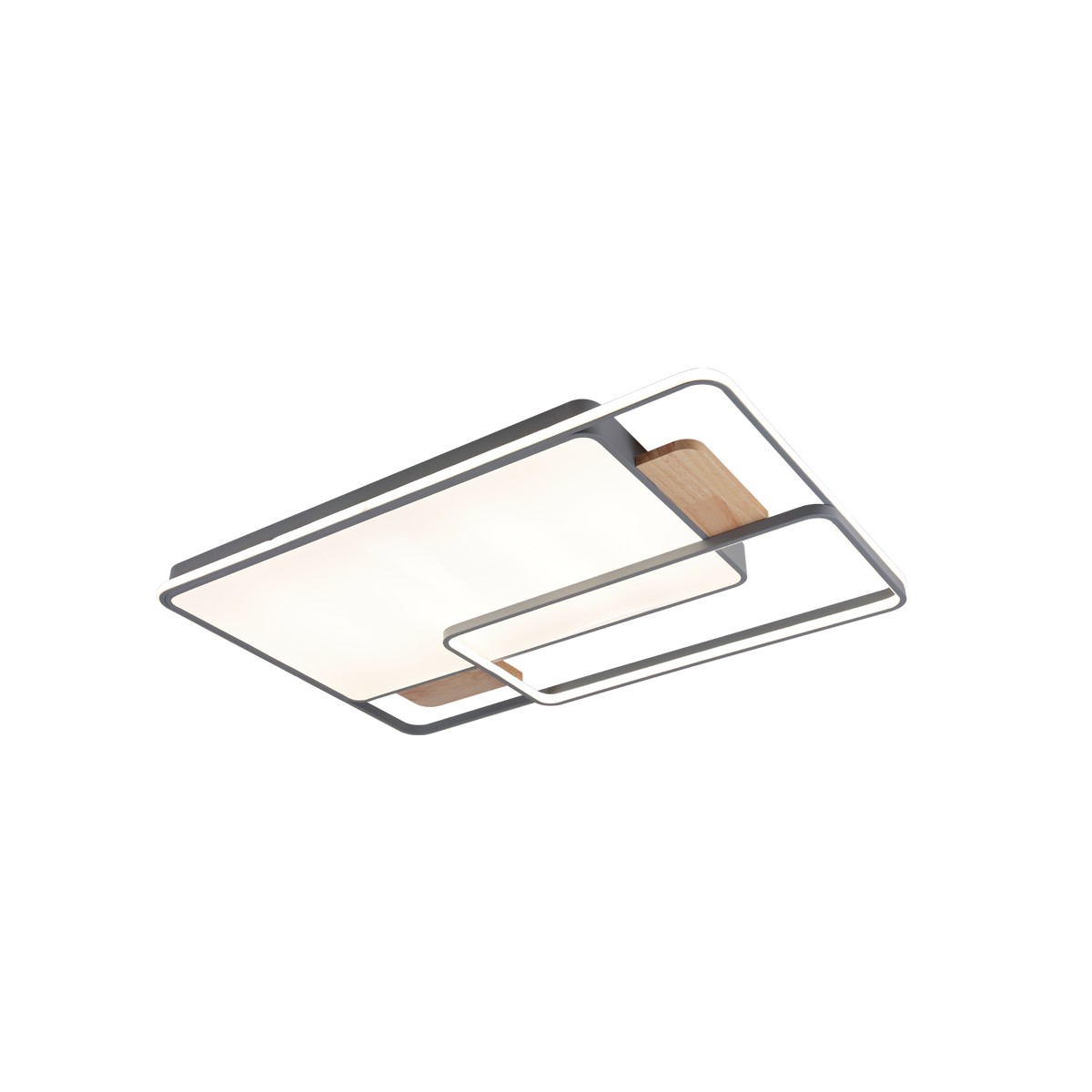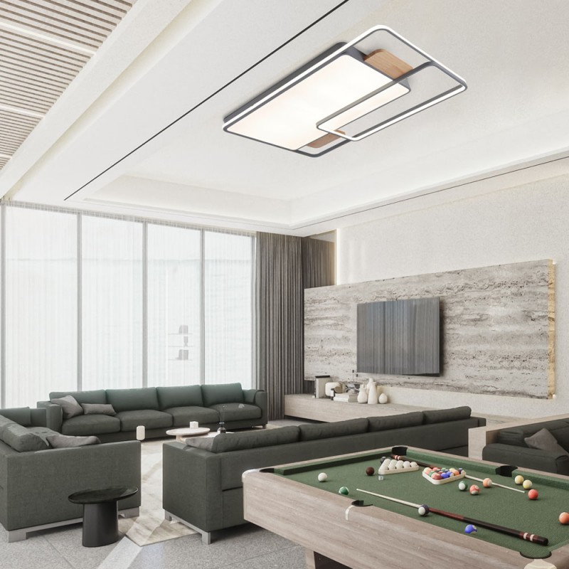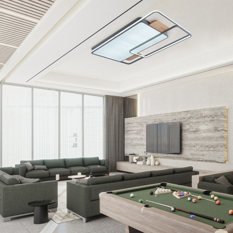 Plafonnier avec éclairage LED intégré à trois températures. Le design du plafonnier offre un large diffuseur rectangulaire qui assure un éclairage optimal dans une grande pièce. La commande incluse permet non seulement de régler la tonalité de la lumière, mais aussi d'en régler l'intensité et de l'allumer ou de l'éteindre. Il dispose d'un mode d'éclairage nocturne et d'une mémoire de mise en marche qui permet de récupérer le dernier réglage de l'éclairage.