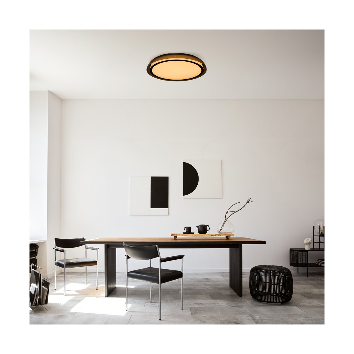 Plafonnier à LED pour les salons et les chambres à coucher. Plafonnier circulaire au design moderne, idéal pour éclairer un salon ou une chambre à coucher. La télécommande permet de régler la température de couleur et de diminuer l'intensité de la lumière pour créer l'atmosphère idéale dans la pièce. Le plafonnier dispose d'un mode veilleuse et d'une mémoire de couleur, ce qui lui permet de conserver le dernier réglage lorsqu'il est éteint et rallumé.