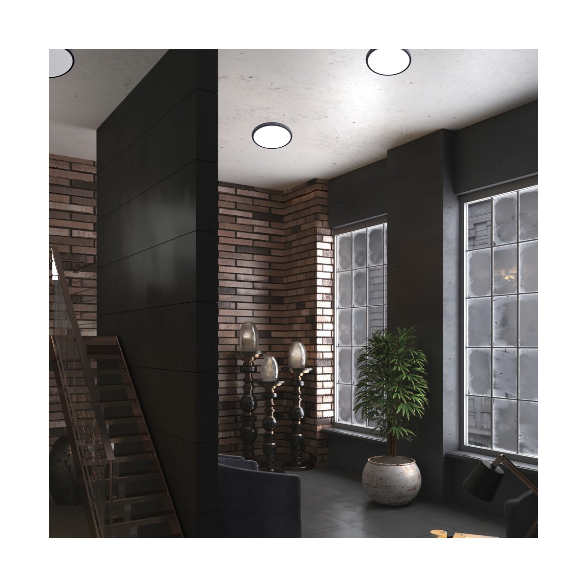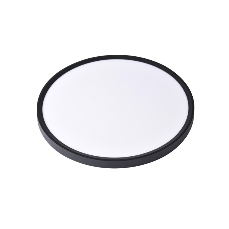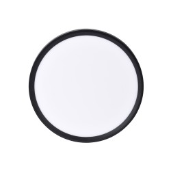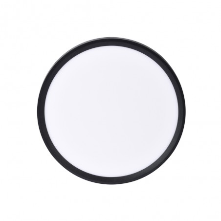 Plafonnier de surface avec trois températures de couleur. Plafonnier LED circulaire ultra-mince, parfait pour l'éclairage fonctionnel des espaces intérieurs. Il dispose de trois températures de couleur (3000-4000-6500K)* et de trois intensités lumineuses (10-50-100%)**. Installation facile directement dans le plafond et design ultra fin (25 mm). Cadre en aluminium noir et diffuseur acrylique.