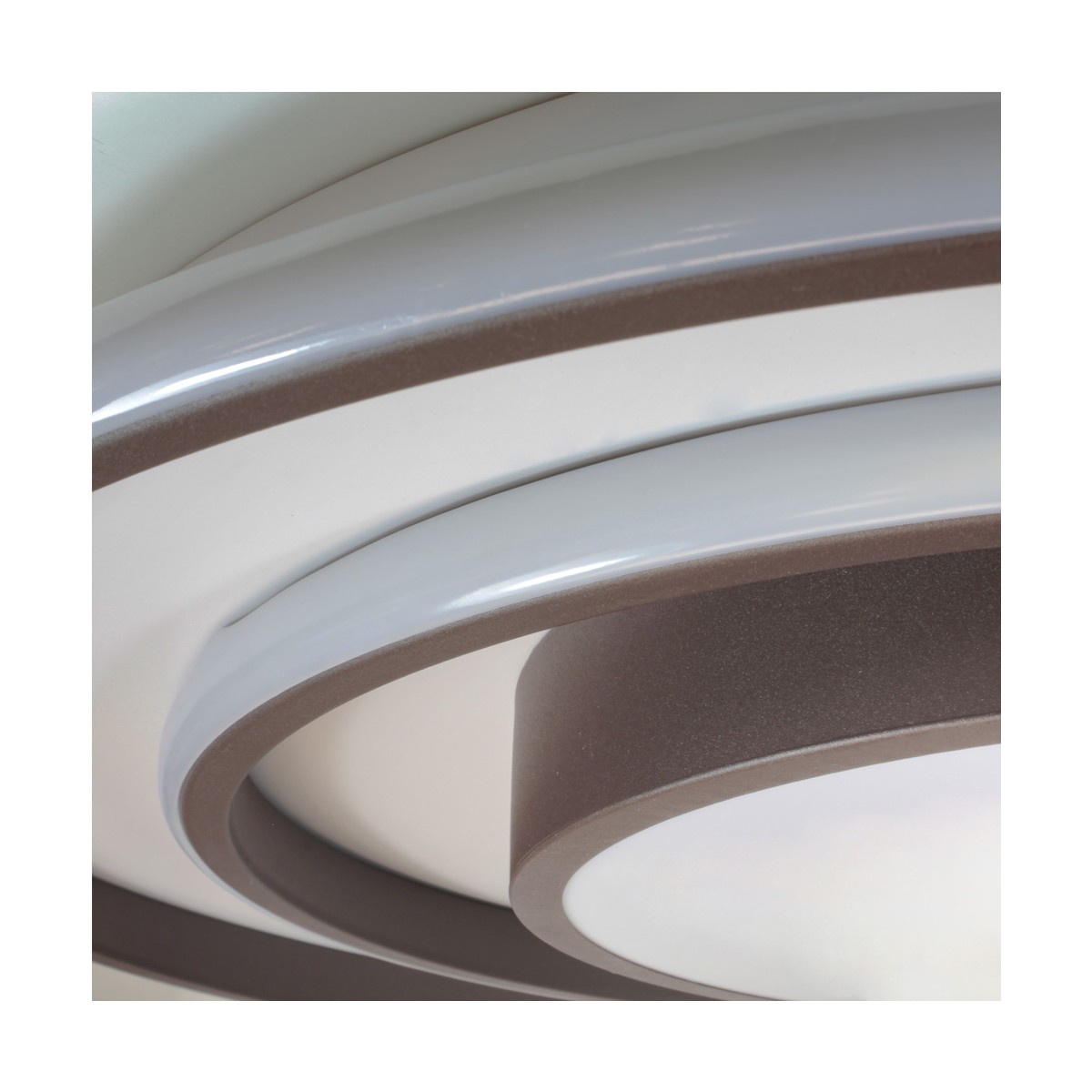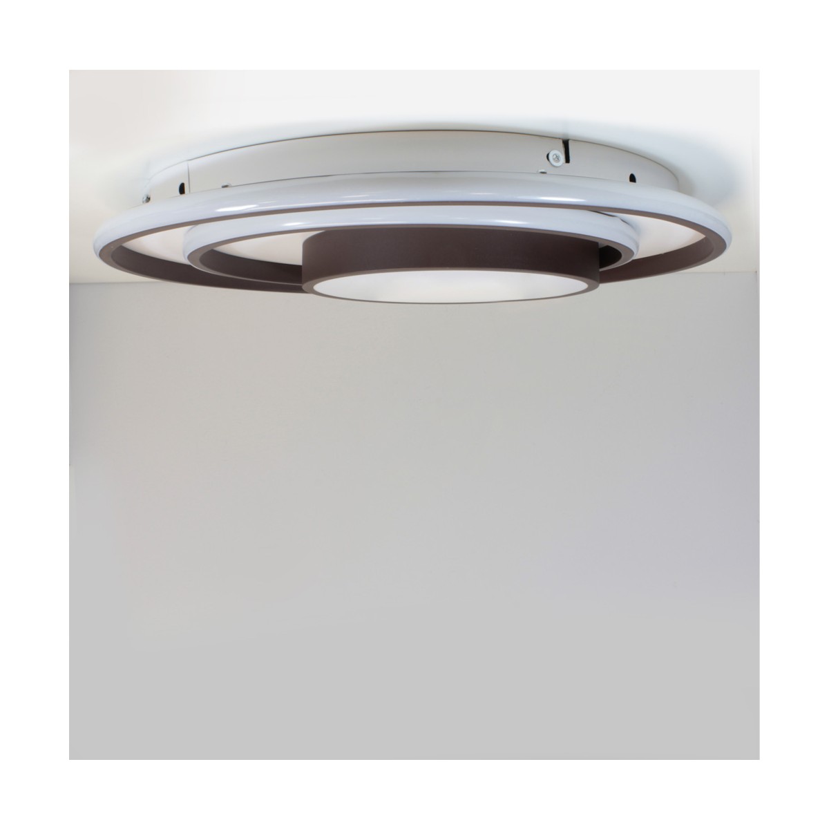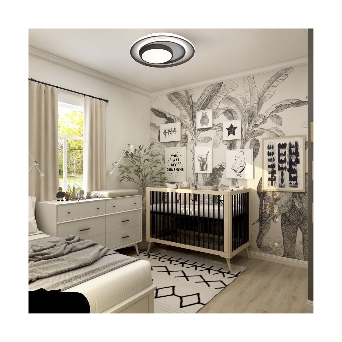 Plafonnier LED circulaire décoratif avec éclairage LED intégré à trois températures. La structure du plafonnier permet de créer différentes ambiances lumineuses grâce à ses bandes lumineuses. La commande fournie permet non seulement de régler la tonalité de la lumière, mais aussi d'en régler l'intensité et de l'allumer ou de l'éteindre. Il dispose également d'un mode d'éclairage nocturne et d'une fonction de mémorisation qui permet de récupérer le dernier éclairage réglé.