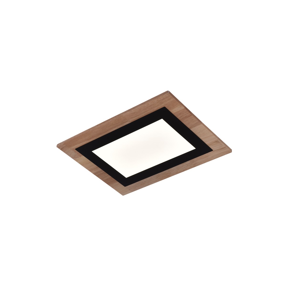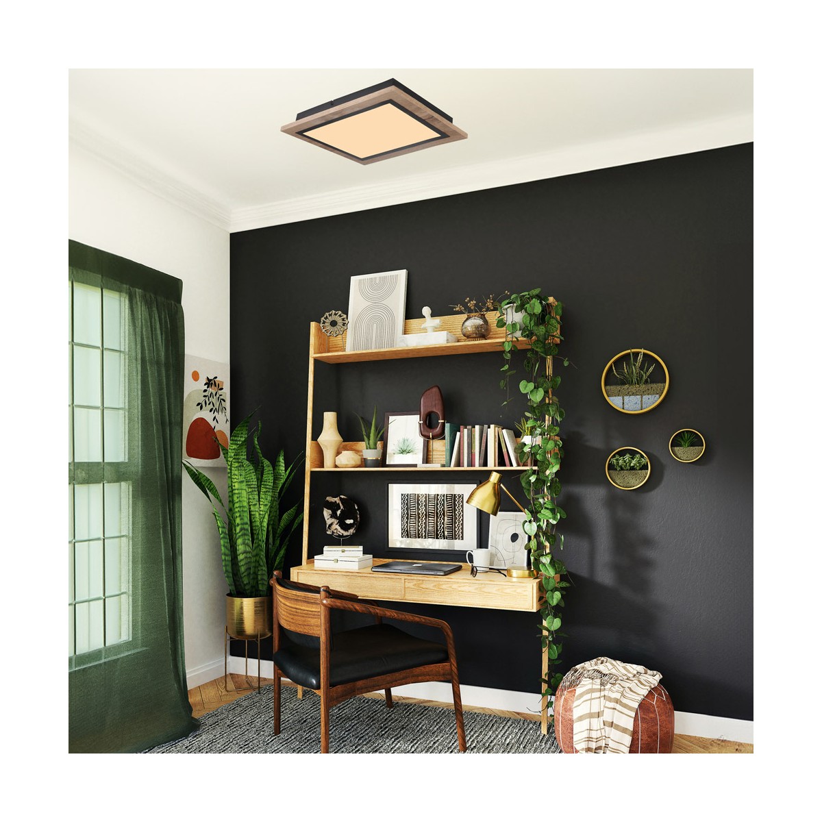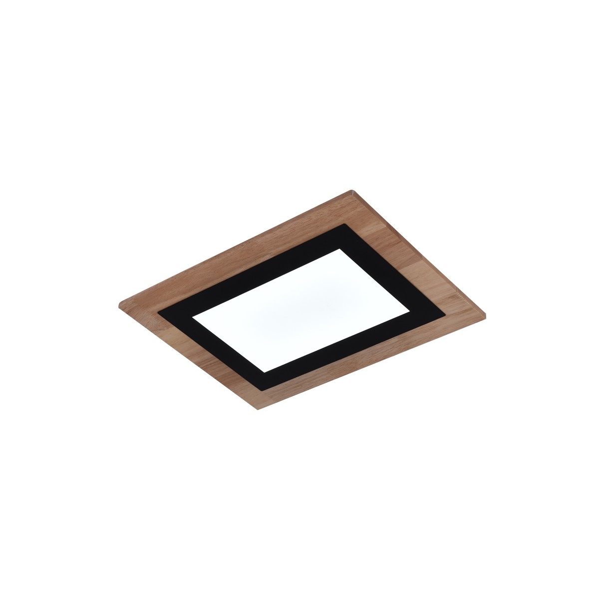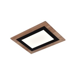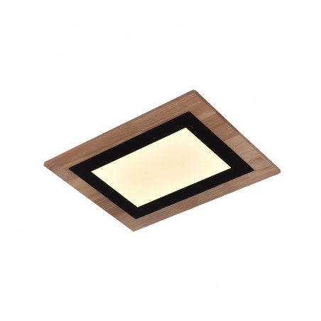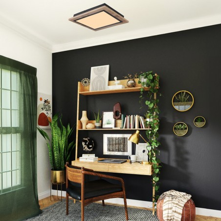 Plafonnier LED intelligent pour les salons et les chambres à coucher. Plafonnier rectangulaire avec technologie Smart et Bluetooth pour contrôler l'éclairage depuis un smartphone ou une tablette. Design de forme rectangulaire en couleur bois et cadre intérieur noir comme contour du diffuseur. Il dispose d'un éclairage LED intégré de 25W et 2000 lumens réglable en tonalité et en intensité de lumière. Télécommande incluse.