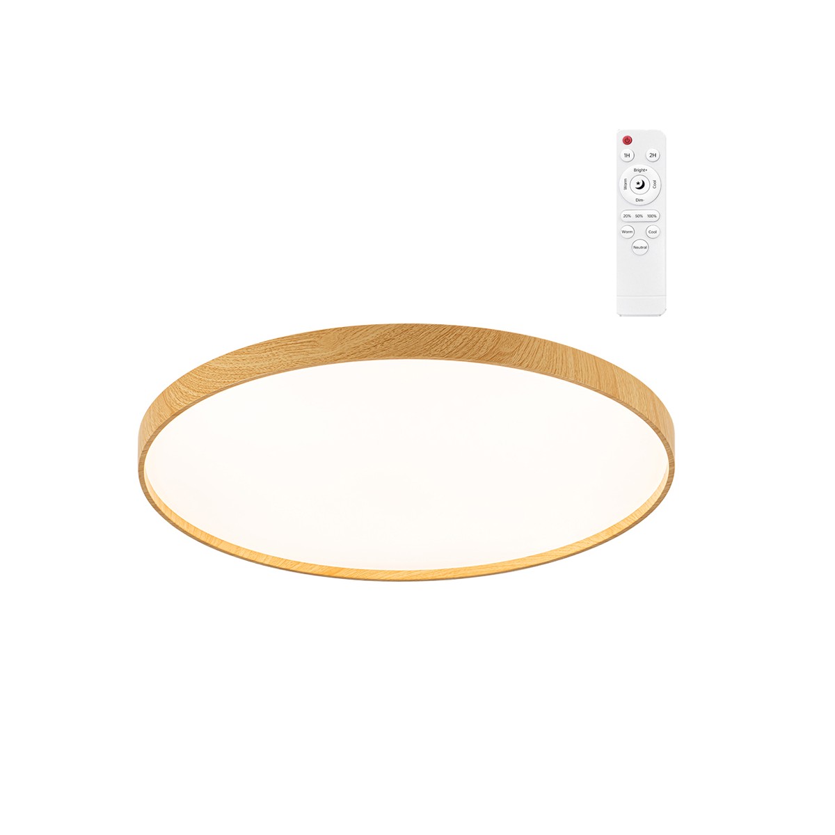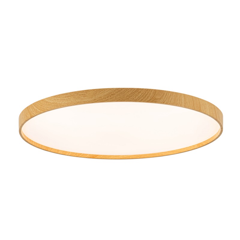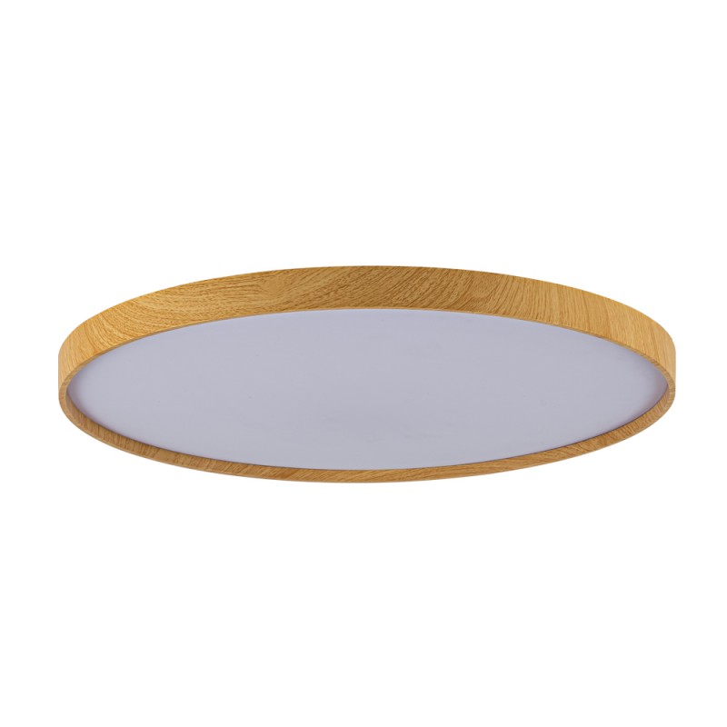 Plafonnier LED Panam 3CCT à intensité variable. Plafonnier de 60 centimètres avec une décoration en bois qui lui confère une touche nordique. Il dispose d'un éclairage LED intégré avec trois intensités (20-50-100%) et trois nuances de couleurs (3000-4000-6000K), ainsi que la possibilité de les régler progressivement. Il dispose d'une configuration d'éclairage en mode nuit, d'une mémoire de mise en marche et d'une minuterie (1-2H) pour programmer l'extinction. Télécommande incluse. LED 80W, 8800 lm. et 3CCT.
