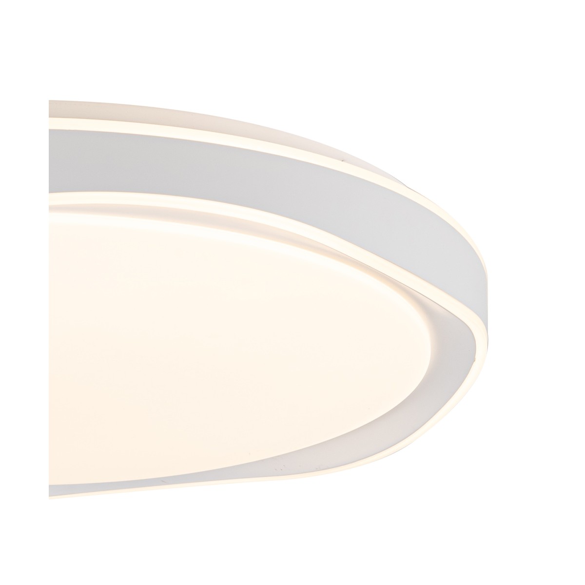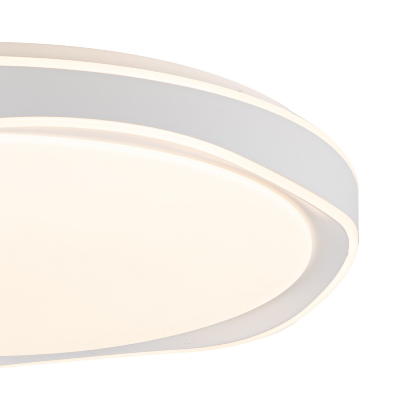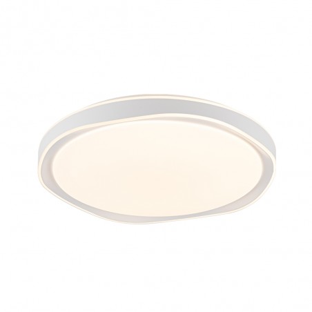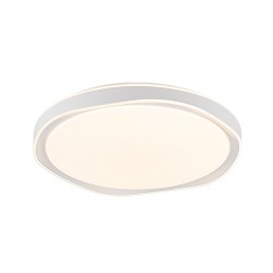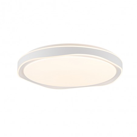 Plafonnier LED 3CCT à variateur de lumière Atlas. Plafonnier de 50 centimètres conçu pour l'éclairage principal d'une chambre ou d'un salon. Il dispose d'un éclairage LED intégré avec trois intensités (20-50-100%) et trois nuances de couleurs (3000-4000-6000K), ainsi que la possibilité de les régler progressivement. Il dispose d'une configuration de l'éclairage en mode nuit, d'une mémoire d'allumage et d'une minuterie (1-2H) pour programmer l'extinction. Télécommande incluse. LED 72W, 7920 lm. et 3CCT.