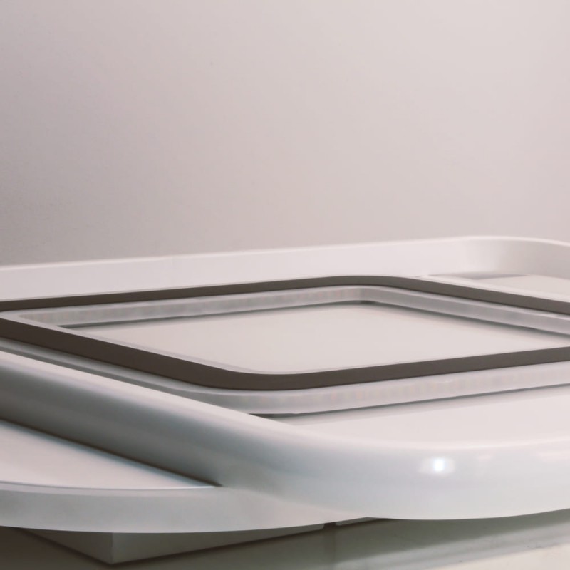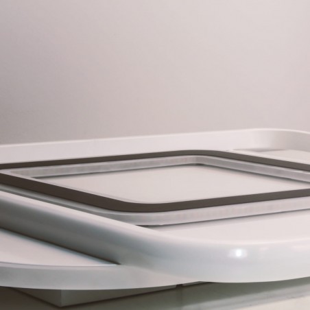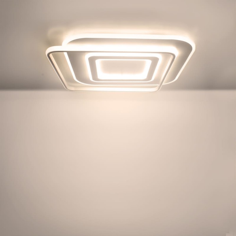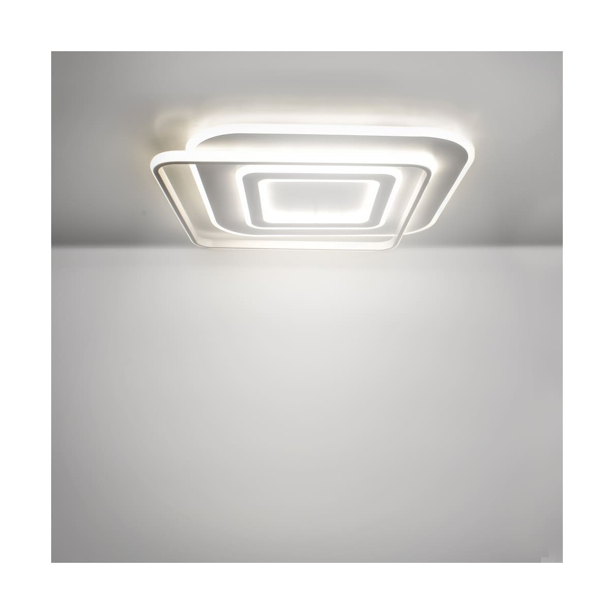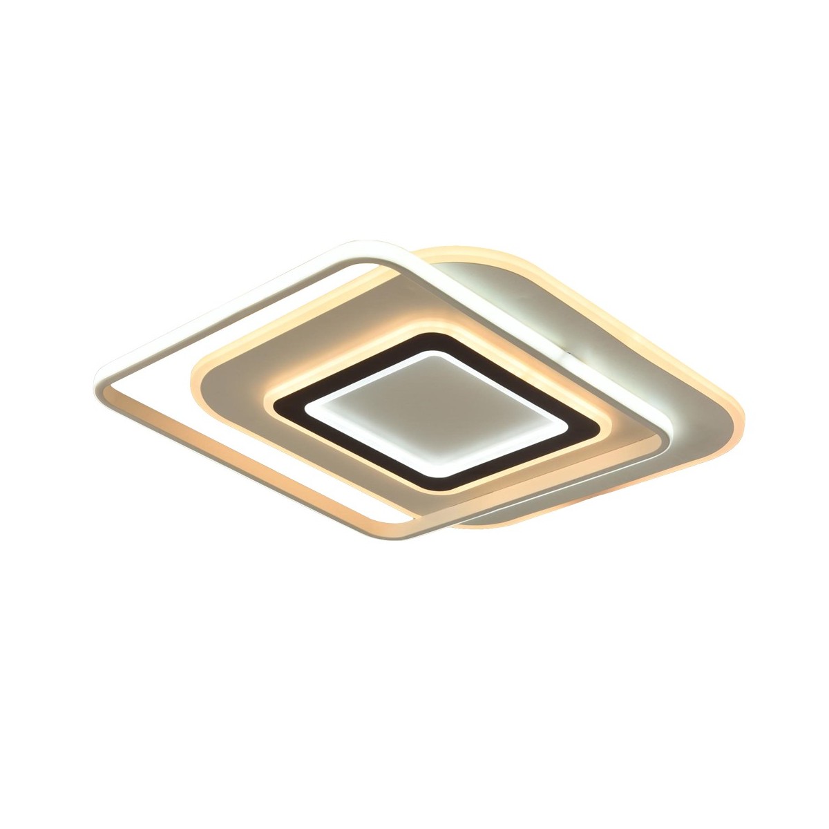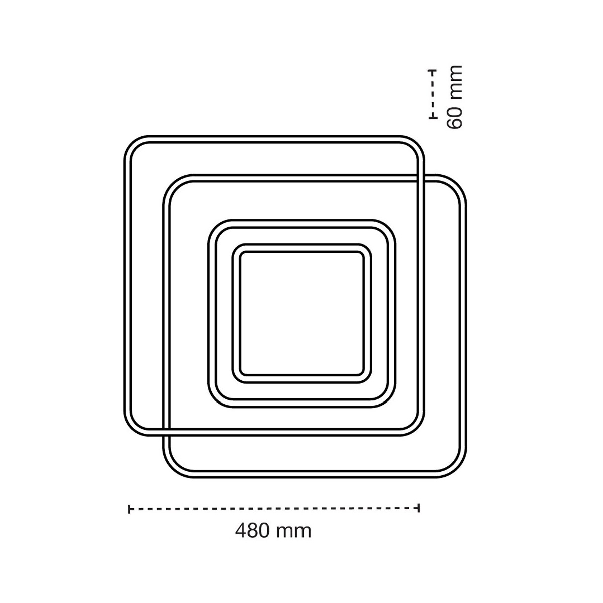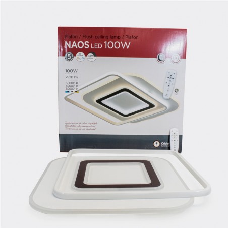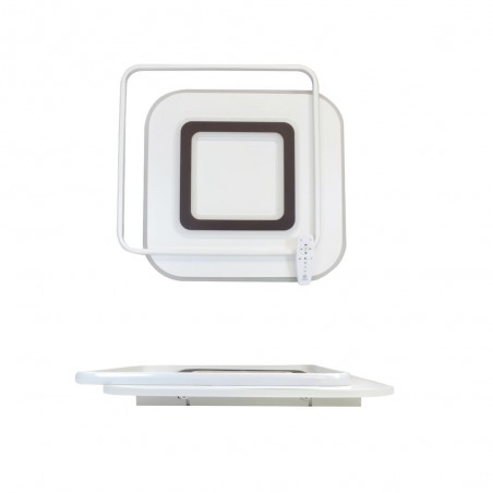 Plafonnier LED décoratif formé de différents carrés qui se superposent créant un dessin géométrique. Eclairage LED intégré de 100W avec changement de température CCT et intensité réglable avec veilleuse, avec fonction de mémorisation de l'allumage. Comprend un télécommande qui fonctionne avec 2 piles AAA