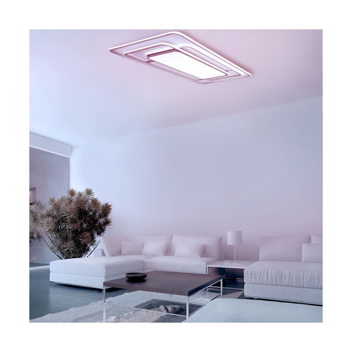 Plafonnier décoratif à LED avec éclairage LED intégré à trois températures. La structure du plafonnier crée différents anneaux de lumière qui peuvent être combinés avec différentes nuances de lumière pour créer différentes lumières. Grâce à la commande incluse, en plus de régler la tonalité de la lumière, il est possible de réguler l'intensité et de l'allumer ou de l'éteindre. Il dispose d'un mode d'éclairage nocturne et d'une fonction de mémoire pour récupérer le dernier réglage d'éclairage.