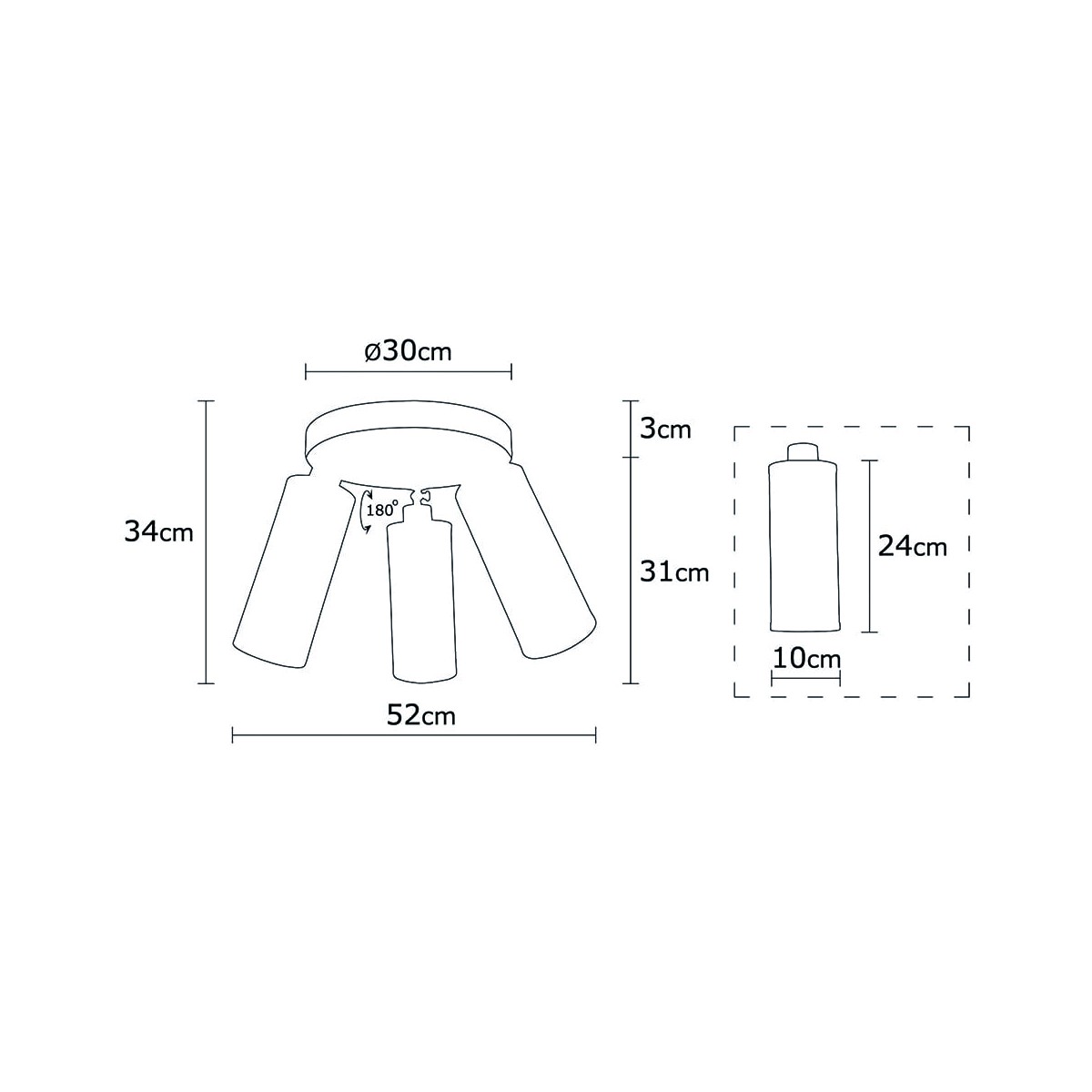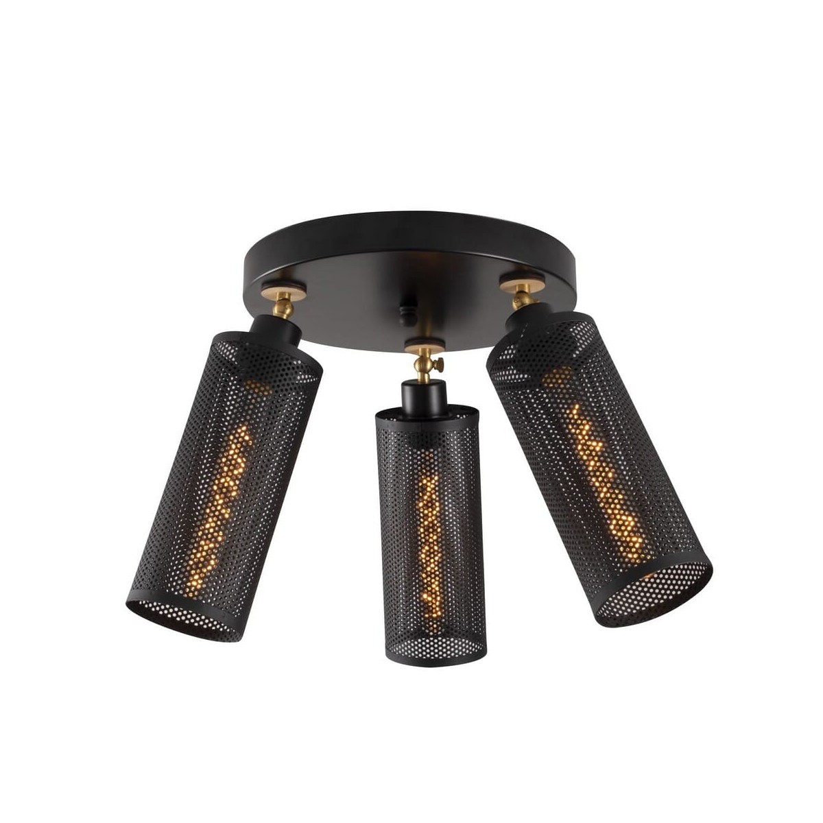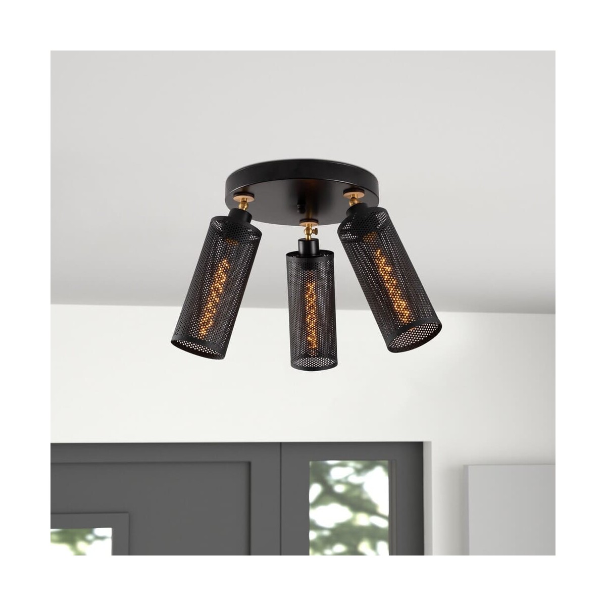 Plafonnier décoratif avec trois abat-jour en grille métallique laquée noire, et un baldaquin rond. Plafonnier avec trois spots orientables pour ampoules E27, non incluses.