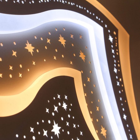 Plafonnier décoratif intelligent avec trois tons de lumière. À partir de l'application mobile et de la télécommande fournie, vous pouvez régler l'intensité et la couleur de la lumière et définir le mode nuit par défaut. Il dispose d'une fonction de mémoire permettant de retrouver le dernier éclairage réglé.