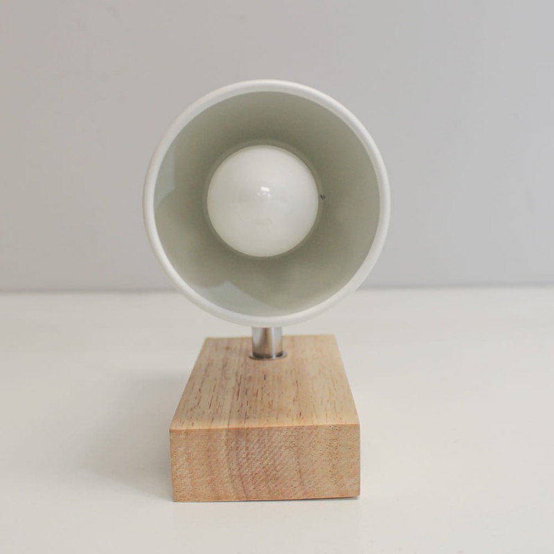 Plafonnier décoratif avec un spot en aluminium pour ampoules E14, non incluses. Le projecteur, laqué en blanc, peut être déplacé pour diriger la lumière à l'endroit souhaité. Le socle de 67x6 cm est en bois naturel.
