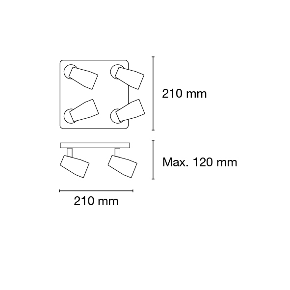 Plafonnier avec 4 spots à ampoules réglables. 4 ampoules x GU10 (non incluses).