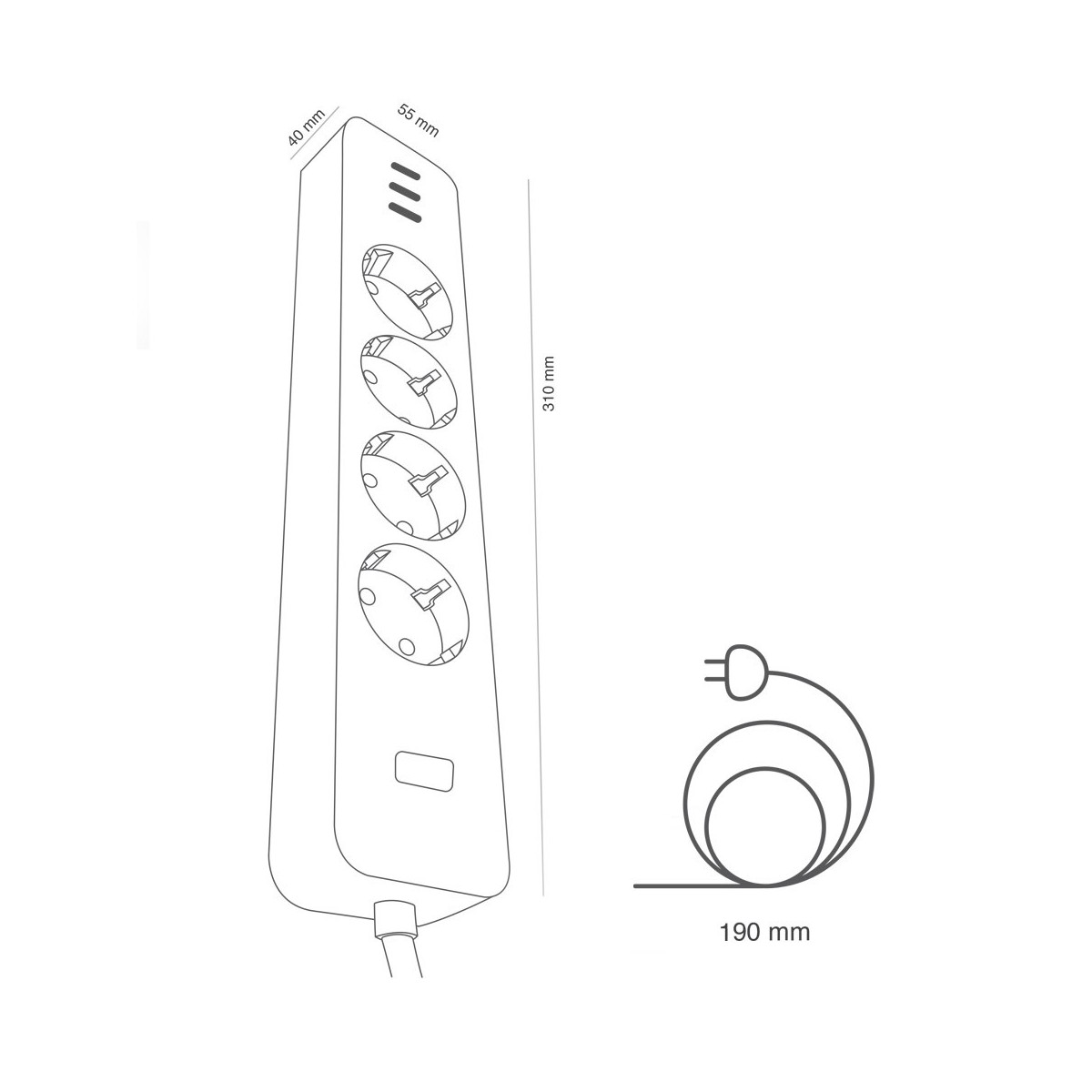 Multiprise intelligente compatible avec Amazon Alexa et Google Assistant. Il permet de connecter 4 fiches et 3 connexions USB en même temps. Il peut être utilisé à partir de l'application Tuya, en l'allumant et en l'éteignant manuellement ou en le programmant pour qu'il s'allume et s'éteigne.