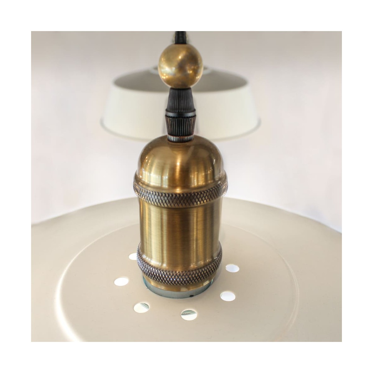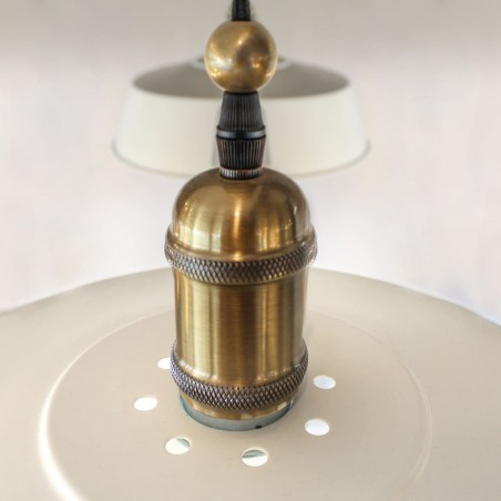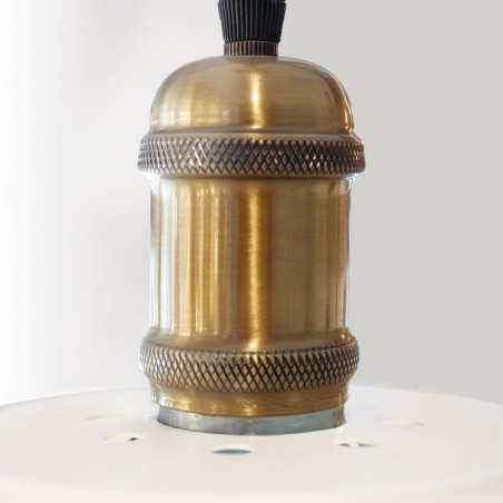 Lampe en blanc mat et cuir vieilli à deux feux pour ampoules E27 "PARIS". Plafonnier idéal pour les cuisines et les salles à manger.