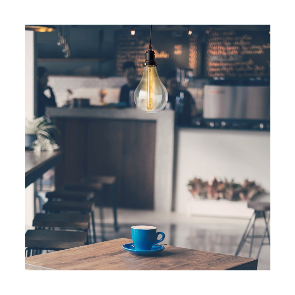 Suspension de style rétro-vintage en noir mat, parfait pour être combiné avec des ampoules décoratives de style vintage. Ampoule à vis E27 non incluse
