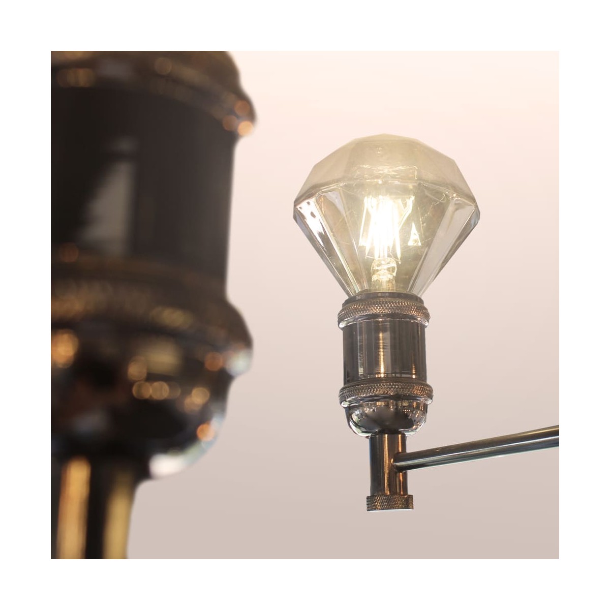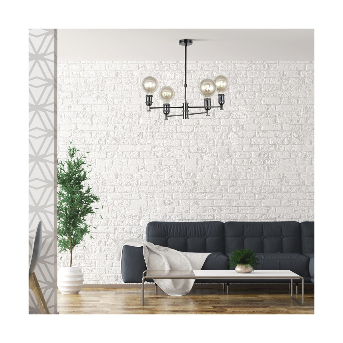 Suspension en métal vintage finition graphite avec 4 bras légers pour douille E27.