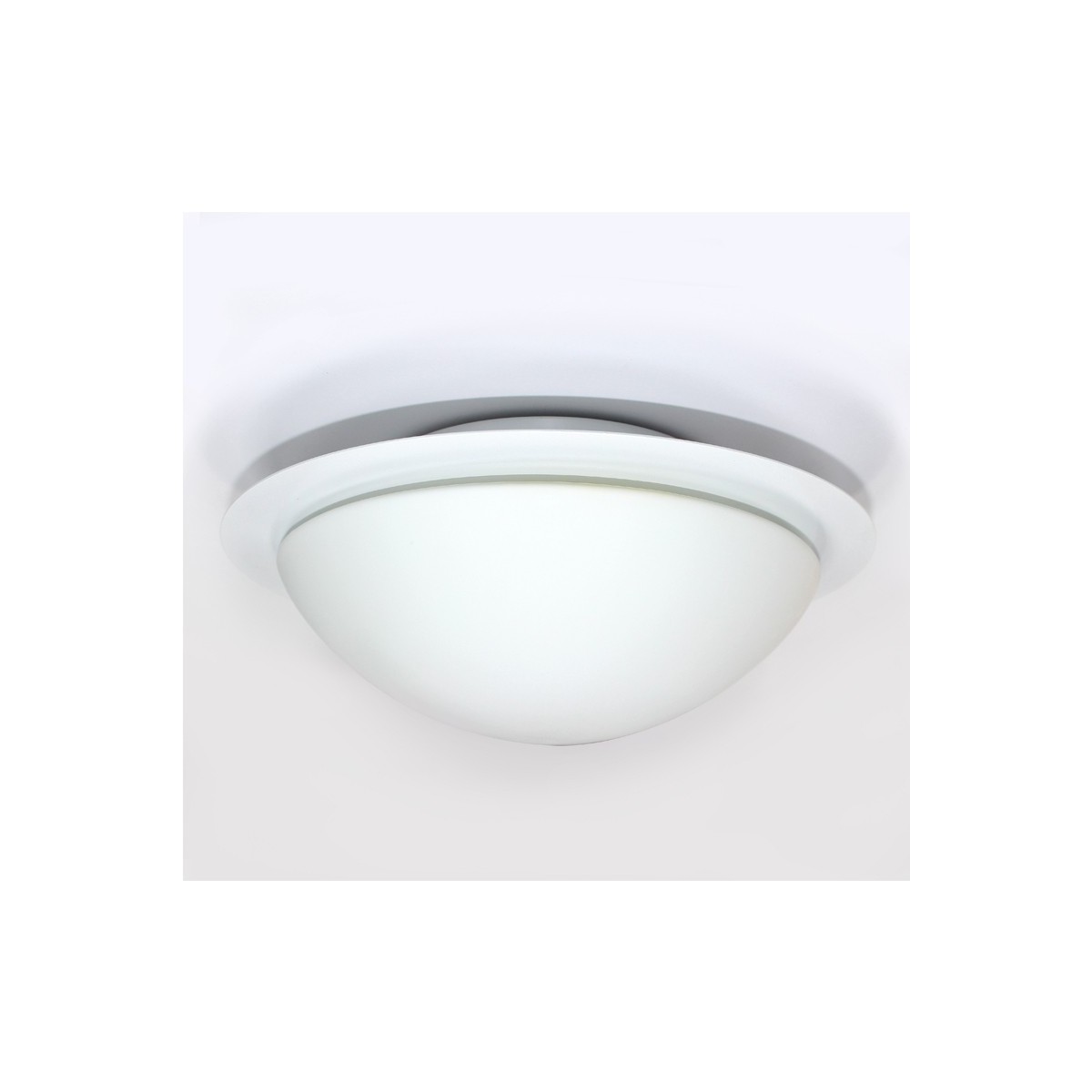 Plafonnier surface ronde avec éclairage LED SMD 9W, 4200K. Structure avec hémisphère en verre blanc mat de 280mm de diamètre.