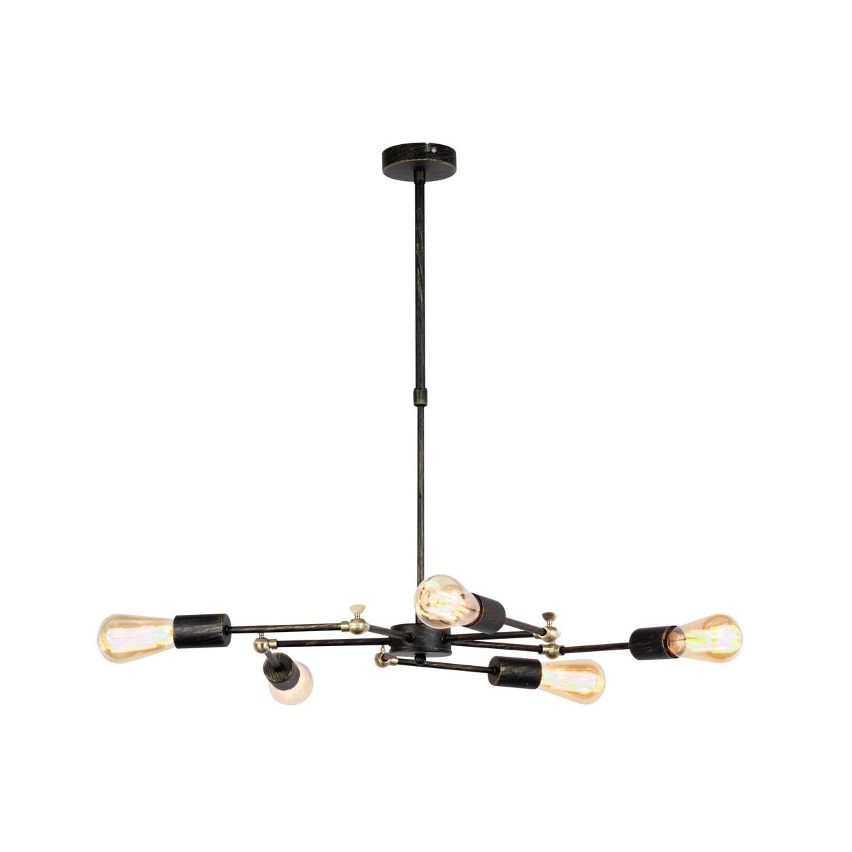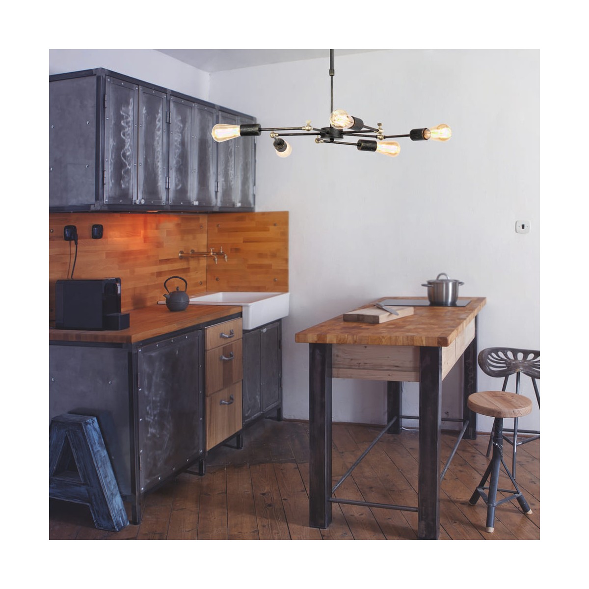 Suspension à 5 bras pour ampoules E27 max 60W. Elle possède une structure métallique avec une finition noire qui vous permet de régler la hauteur de la lampe.