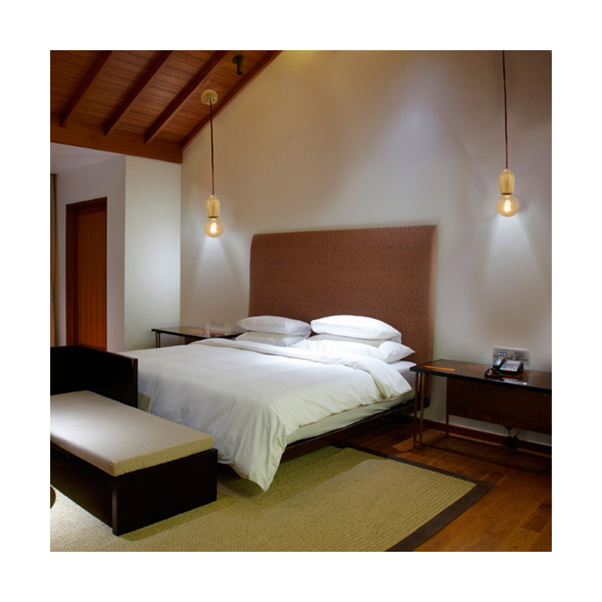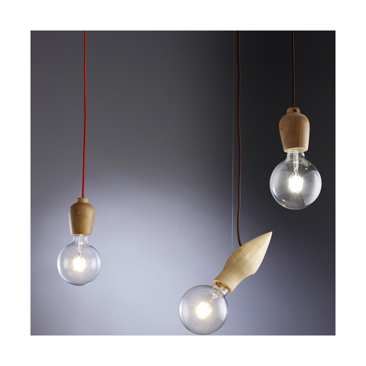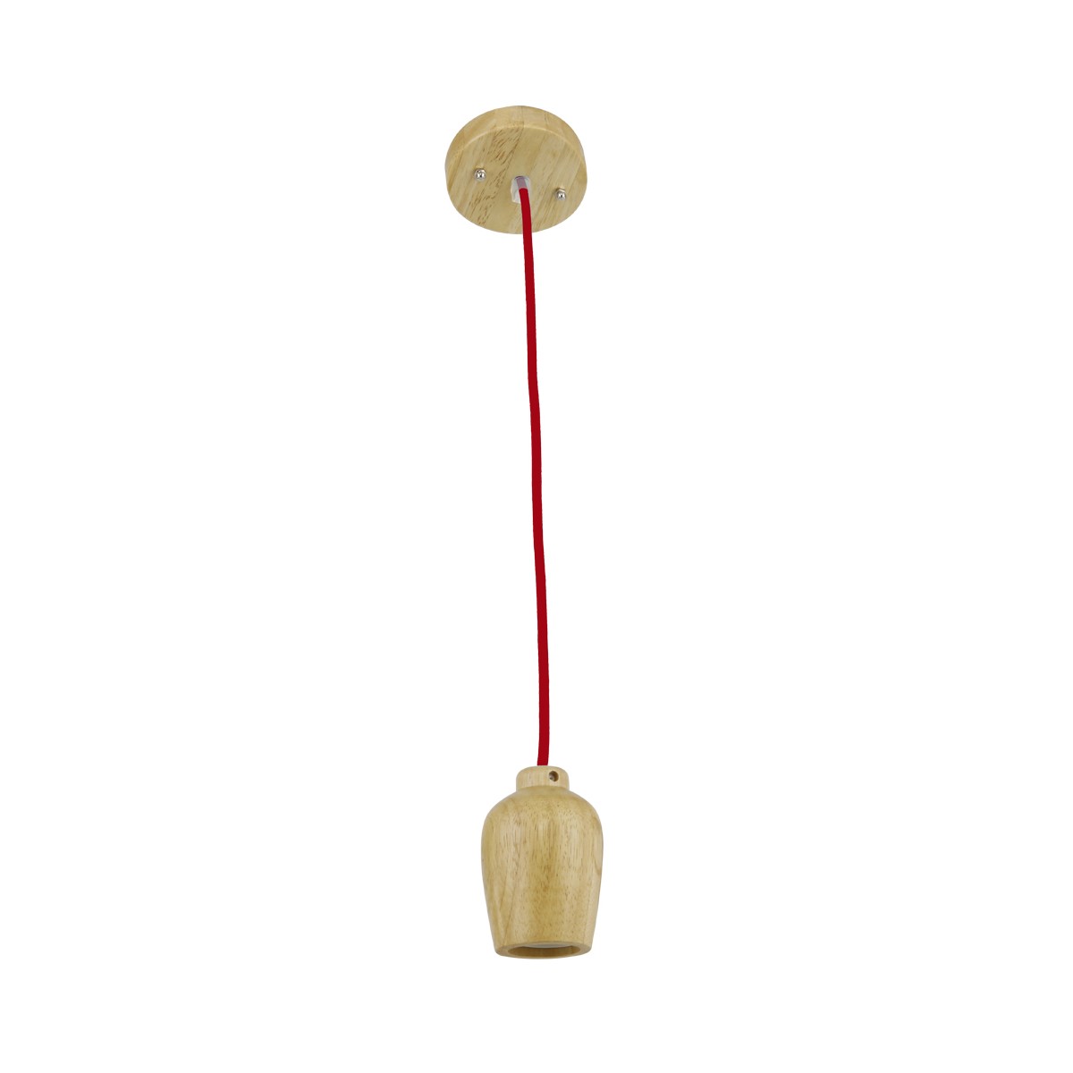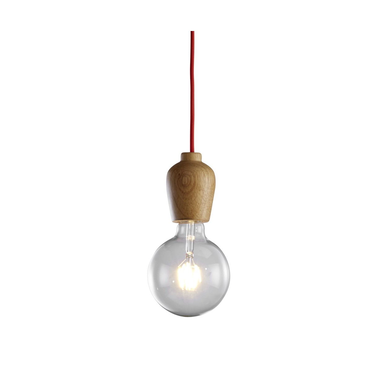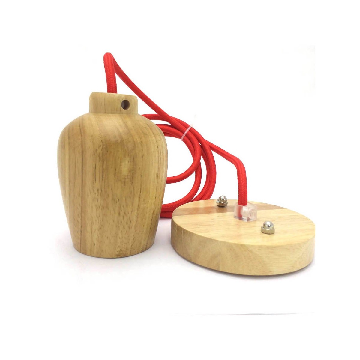 Porte-lampe en bois verni et câble textile rouge de style rétro-vintage (ampoule non incluse).