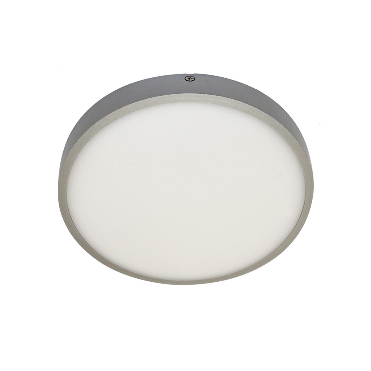 Plafonnier rond avec LED intégrée de 30W avec cadre en aluminium laqué gris. Il a une lumière neutre, parfaite pour les cuisines..