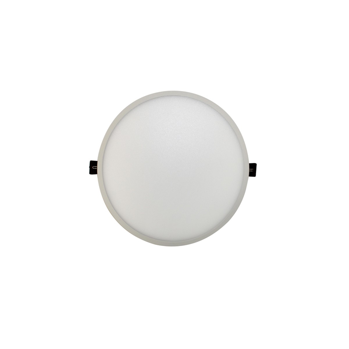 Spot encastré led rond avec LED intégrée de 8W avec cadre en aluminium laqué blanc. Il a une lumière neutre, parfaite pour les cuisines..