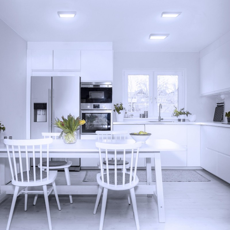 Encastré avec un éclairage LED de 6W. Température de lumière réglable (3000ºK-4000ºK-5500ºK). Luminaire encastré à surface carrée, finition blanche. Pilote inclus. Parfait pour les plafonds de cuisines, couloirs, salles de bains ou locaux commerciaux.