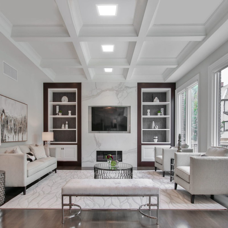 Spot encastré carré avec éclairage LED intégré 30W, avec 2450 lummenes. Lumière neutre 4000K. Structure en aluminium laqué blanc avec diffuseur en acrylique.