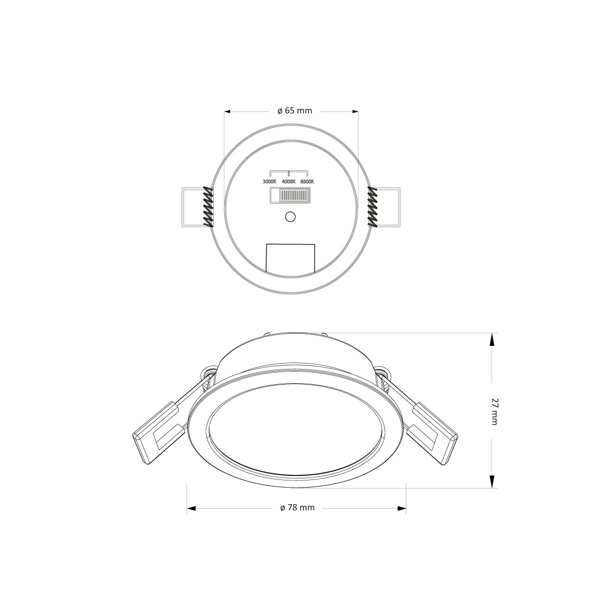Spot encastré rond noir Lannic. Spot encastré conçu pour l'éclairage fonctionnel et les projets contractuels dans les espaces intérieurs. Il dispose de trois températures de couleur (3000-4000-6500K), sélectionnées au moment de l'installation à l'aide d'un petit interrupteur. Cadre circulaire noir.