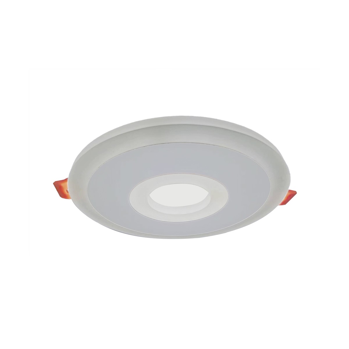 Downlight LED encastré Halo. Spot encastré avec 6 modes d'éclairage conçu pour les projets d'éclairage intérieur contractuels. Pour changer de mode d'éclairage, vous devez allumer et éteindre la lumière à partir de l'interrupteur mural. La séquence est la suivante : lumière neutre, lumière froide, lumière chaude, lumière chaude-froide, lumière froide-chaude, lumière froide-chaude et veilleuse.