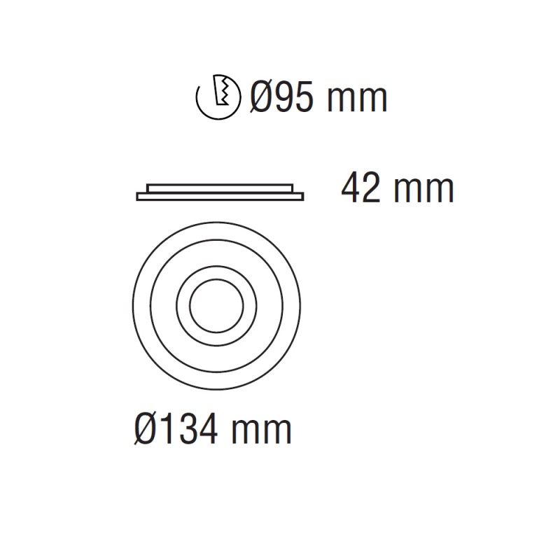 Installation encastrée dans le plafond dans une cavité de 9,50 cm de diamètre.