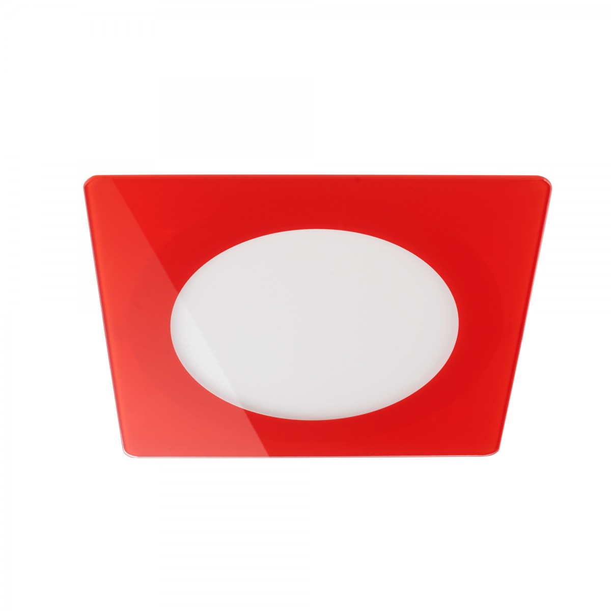 Downlight LED extra plat carré avec verre décoratif rouge, parfait pour les plafonds encastrés dans les cuisines, les couloirs, les salles de bains ou les locaux commerciaux, les restaurants ou les magasins. Driver inclus..