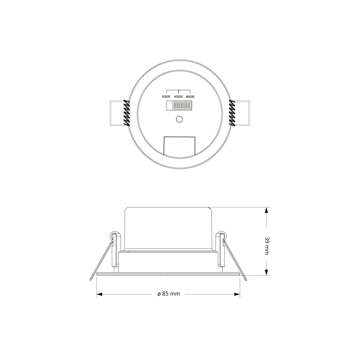 Encastré de plafond avec trois températures de couleur. Encastré circulaire inclinable avec ampoule LED GU10 de 7W, 600lm. et trois températures de couleur (3000-4000-6000K)*. Le point lumineux est incliné à un angle de mouvement de 40º. Installation encastrée au plafond avec une découpe de 75 mm. Design circulaire blanc compact très pratique pour l'éclairage fonctionnel des espaces intérieurs.