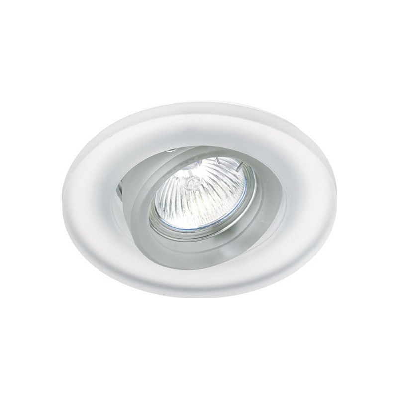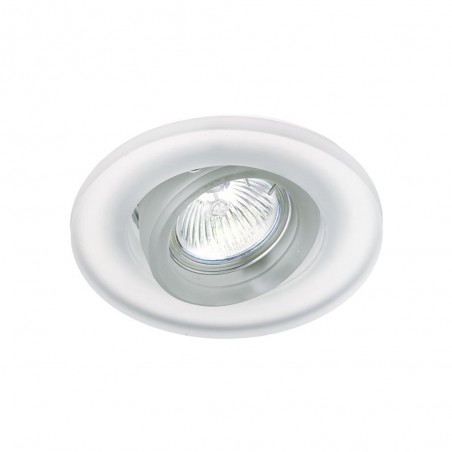 Lumière halogène orientable avec une structure ronde en verre blanc. Inclut une douille 12V GU5.3 50mm.
