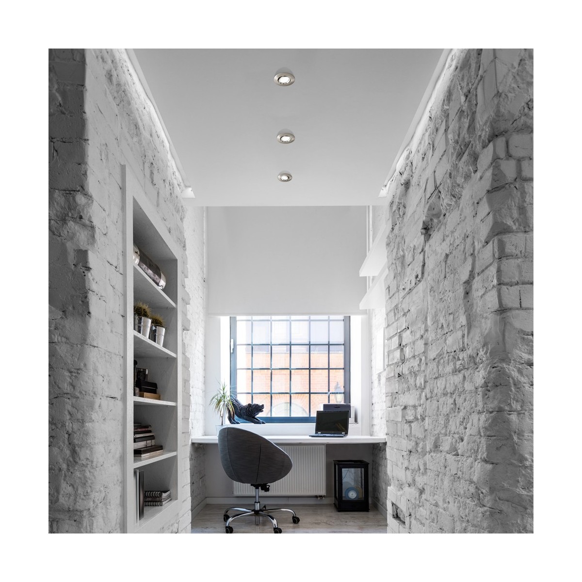 Spot rond encastré en aluminium blanc et culot de lampe GU5.3. Angle d'inclinaison de 45º, permettant de diriger la lumière vers le point désiré. Parfait pour l'éclairage des couloirs, des salons, des chambres ou des magasins.