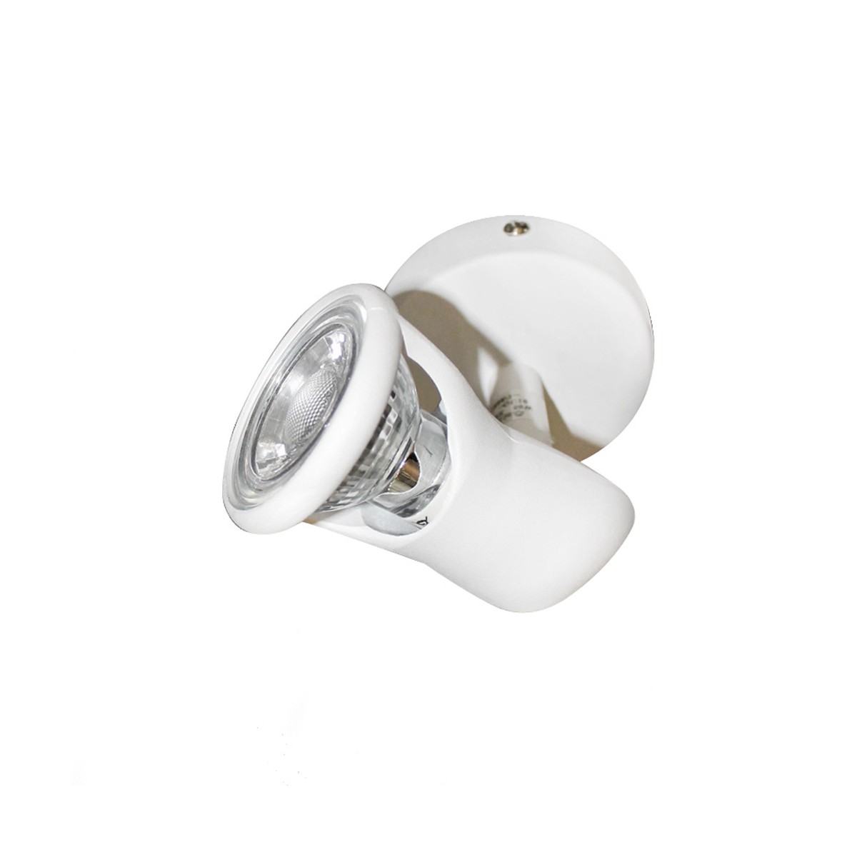 Spot avec base ronde en finition blanche. Ampoules GU10 non comprises. Compatible avec les ampoules LED.
