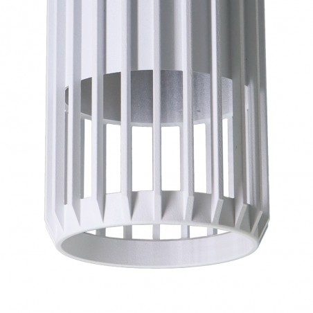 Spot de plafond moderne pour l'éclairage intérieur. Forme cylindrique en aluminium texturé blanc, avec un design en relief et une grille en bas. Conçu pour l'éclairage décoratif et fonctionnel des espaces intérieurs. Collection Sahara.