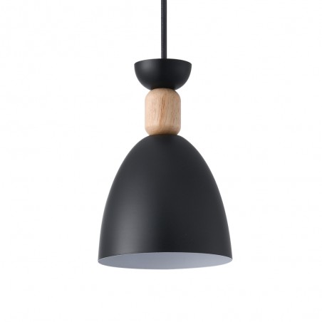 Lampe suspendue pour les salons et les cuisines. Lampe de plafond en noir avec un morceau de bois en guise de décoration. Design de style nordique combinant le métal noir et le bois. Lampe suspendue pour apporter de la lumière sur un point précis de la pièce. Vous pouvez installer plusieurs lampes suspendues en ligne sur un plan de travail ou une table.