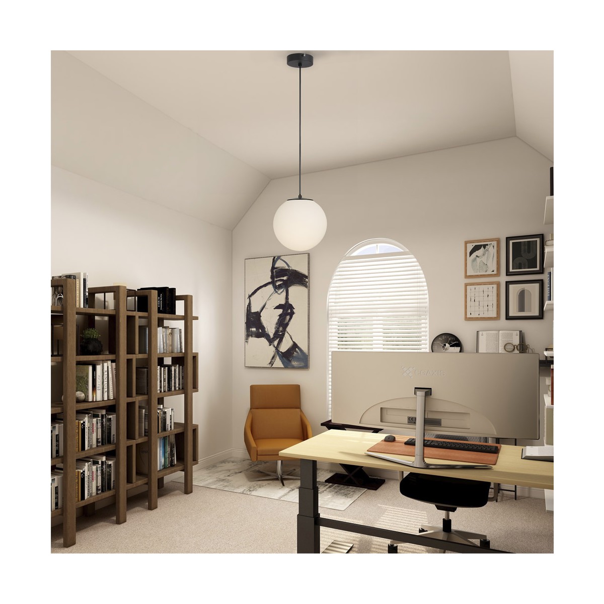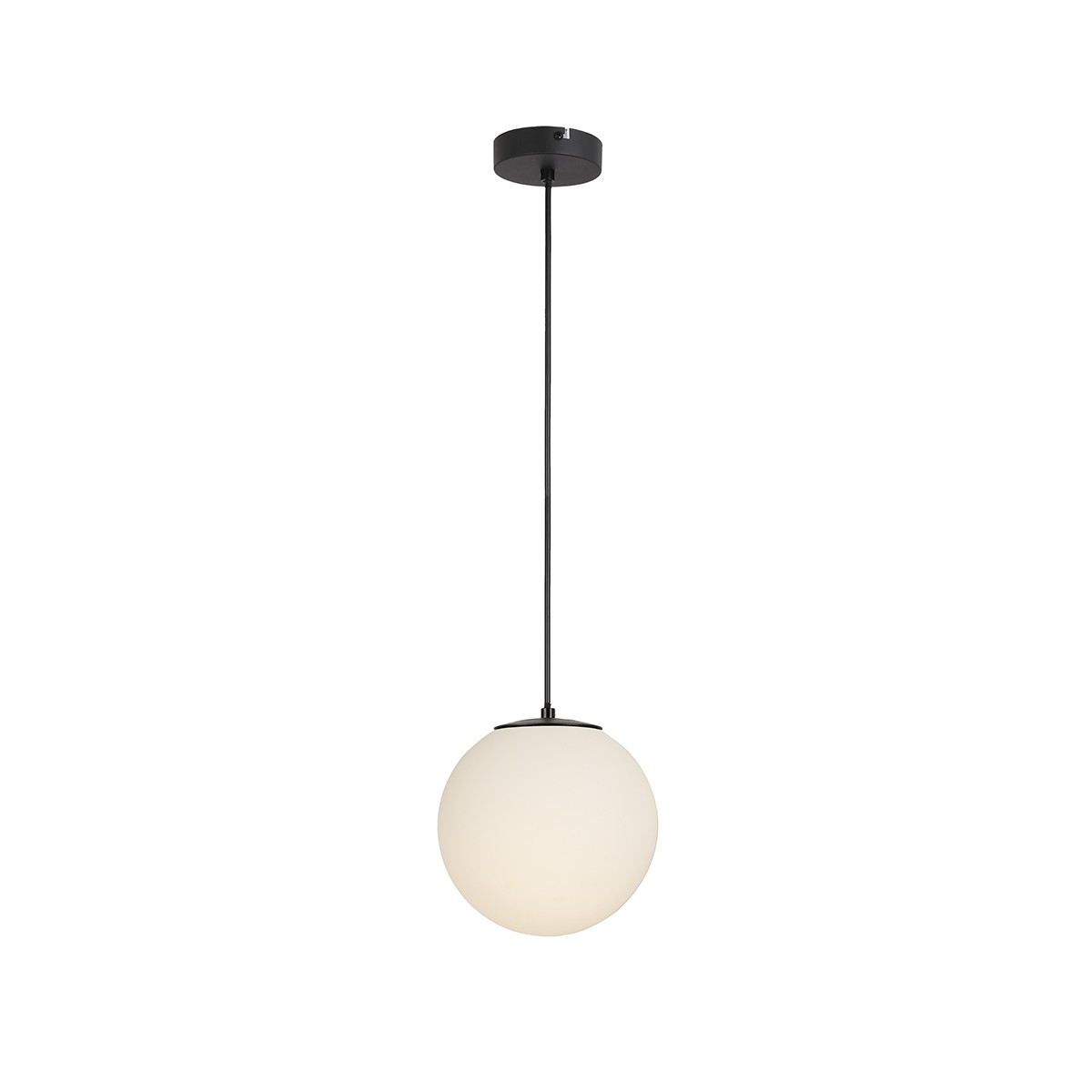 Lampe suspendue avec abat-jour sphérique en verre opale. Lampe de plafond pour l'éclairage décoratif d'une pièce dans une maison, un magasin ou un restaurant. Abat-jour sphérique en verre opale. Capacité de montage d'une ampoule LED E14.