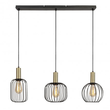 Lampe suspendue pour les salons et les cuisines. Abat-jour en tiges de métal noir laissant apparaître l'ampoule. Le détail doré sur la partie supérieure des abat-jour complète le design offert par cette lampe. Parfaite pour être installée au-dessus d'une table dans la salle à manger ou pour éclairer un plan de travail dans la cuisine. Lampe suspendue pour un éclairage décoratif d'intérieur.