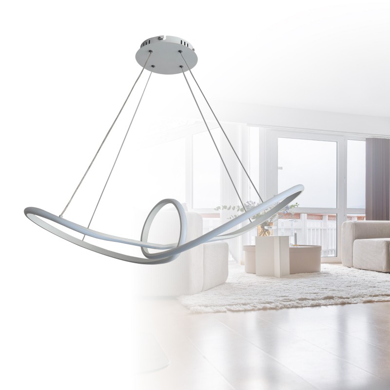 Suspension au design moderne. Éclairage LED intégré pouvant être réglé à partir de la télécommande ou de l'application mobile. La hauteur de la lampe peut être facilement ajustée lors de l'installation.
