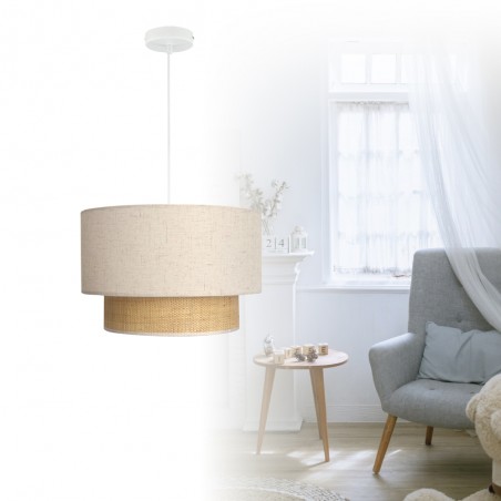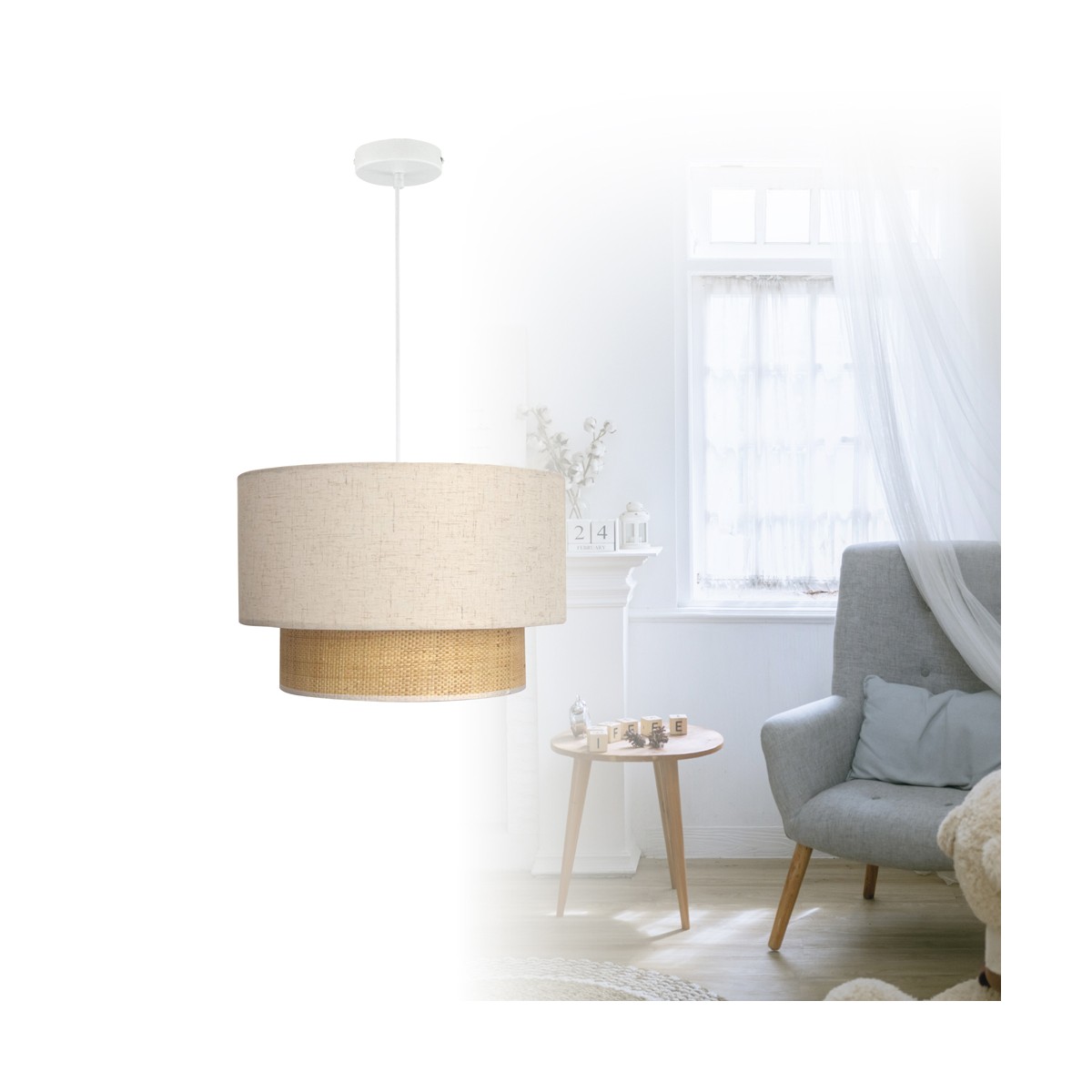 Abat-jour Tiss en rotin de style naturel. Abat-jour en rotin conçu pour donner une touche boho chic à un salon, une chambre ou une cuisine. D'un diamètre de 35 centimètres, il est très pratique à placer sur une table ou à un endroit précis de la pièce. Il doit être associé à un support de lampe suspendue E27.