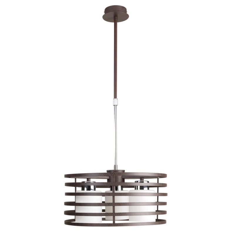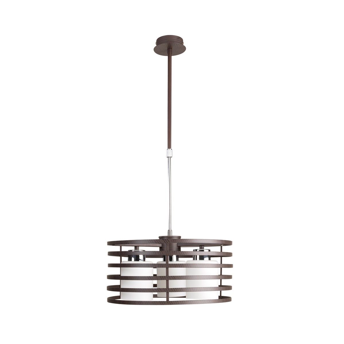 Lampe moderne avec un écran couleur marron et des tulipes en cristal à l'intérieur. Fonctionne avec 3 ampoules E27 Max. 40W (non inclus). Parfait pour les salons, les salles à manger ou les cuisines modernes.