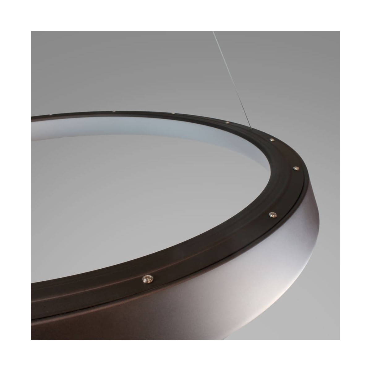 Suspension de plafond avec une lumière LED chaude de 3000K. La hauteur de la lampe peut être facilement réglée à l'aide d'un système simple dissimulé dans la rosace. La rosette et l'anneau de la lampe sont tous deux en aluminium avec un diffuseur en acrylique qui laisse passer la lumière tout en réduisant l'indice d'éblouissement. Vous pouvez trouver la lampe en trois finitions différentes : blanc, brun et argent.