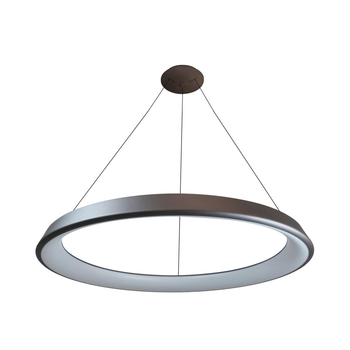Suspension de plafond avec une lumière LED chaude de 3000K. La hauteur de la lampe peut être facilement réglée à l'aide d'un système simple dissimulé dans la rosace. La rosette et l'anneau de la lampe sont tous deux en aluminium avec un diffuseur en acrylique qui laisse passer la lumière tout en réduisant l'indice d'éblouissement. Vous pouvez trouver la lampe en trois finitions différentes : blanc, brun et argent.