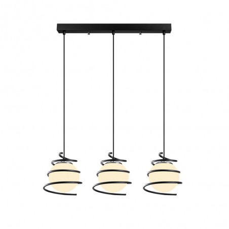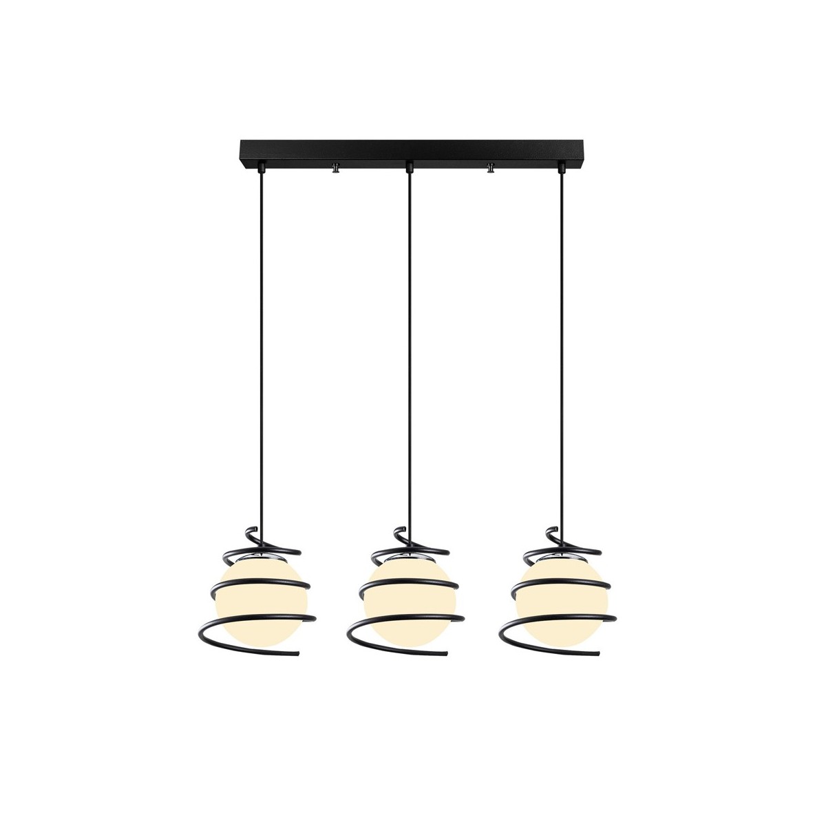 Suspension décorative à trois lumières avec abat-jour en verre dépoli. La hauteur des lumières est réglable et le design peut être personnalisé. Ampoules E27 non incluses.