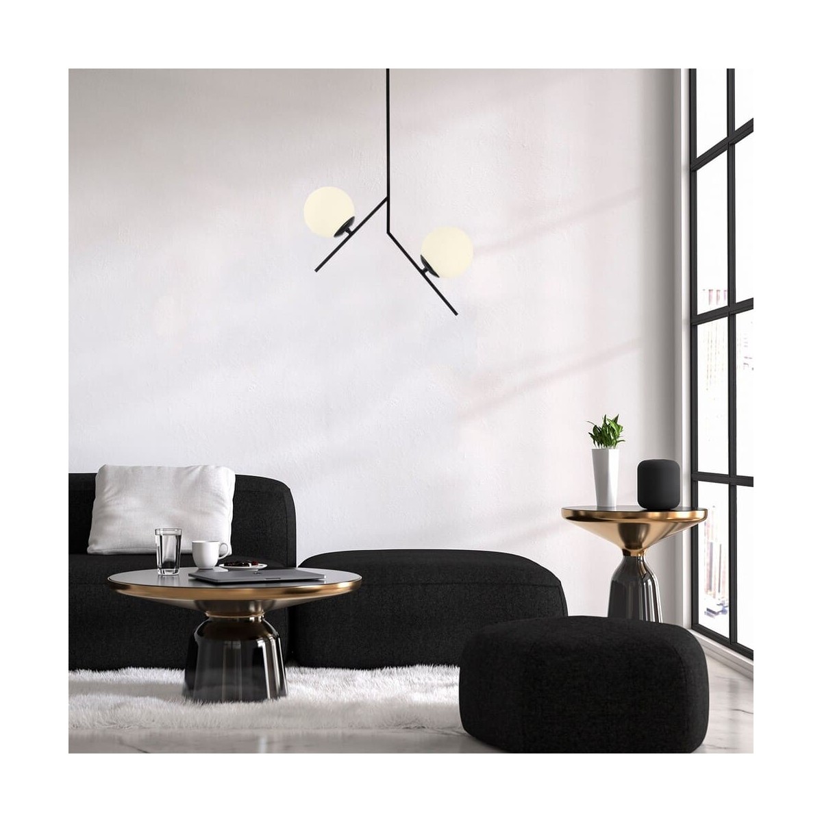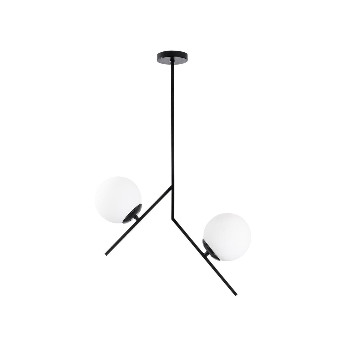 Lampe à suspension décorative avec une lumière et un abat-jour en verre blanc mat de 74 cm de haut. Design moderne avec corps laqué noir. Pour ampoules E27, non incluses.