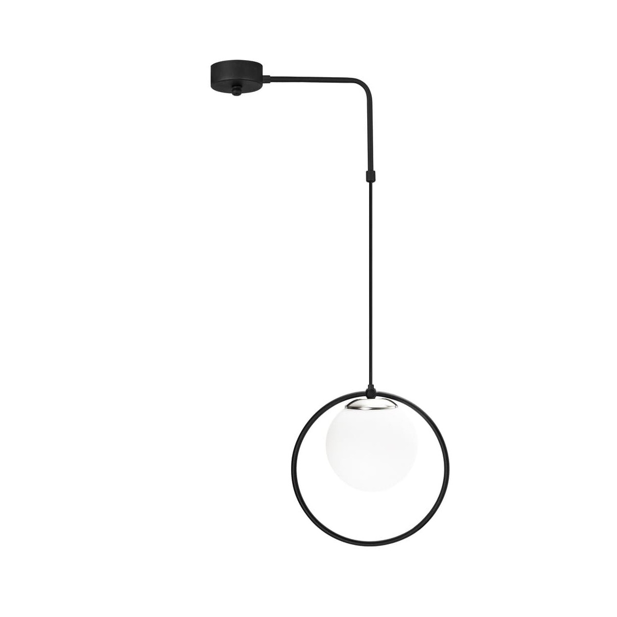 Suspension décorative avec câble de longueur réglable et point de lumière déplacé. Design moderne composé d'un abat-jour en verre blanc mat entouré d'un anneau en métal noir. Il permet de créer différentes compositions d'éclairage décoratif, en s'adaptant aux différents espaces, en réglant la hauteur de la lampe. Parfait pour les salles à manger, les salons et les chambres à coucher à la recherche d'un style d'éclairage différent. Pour ampoules E27, non incluses.