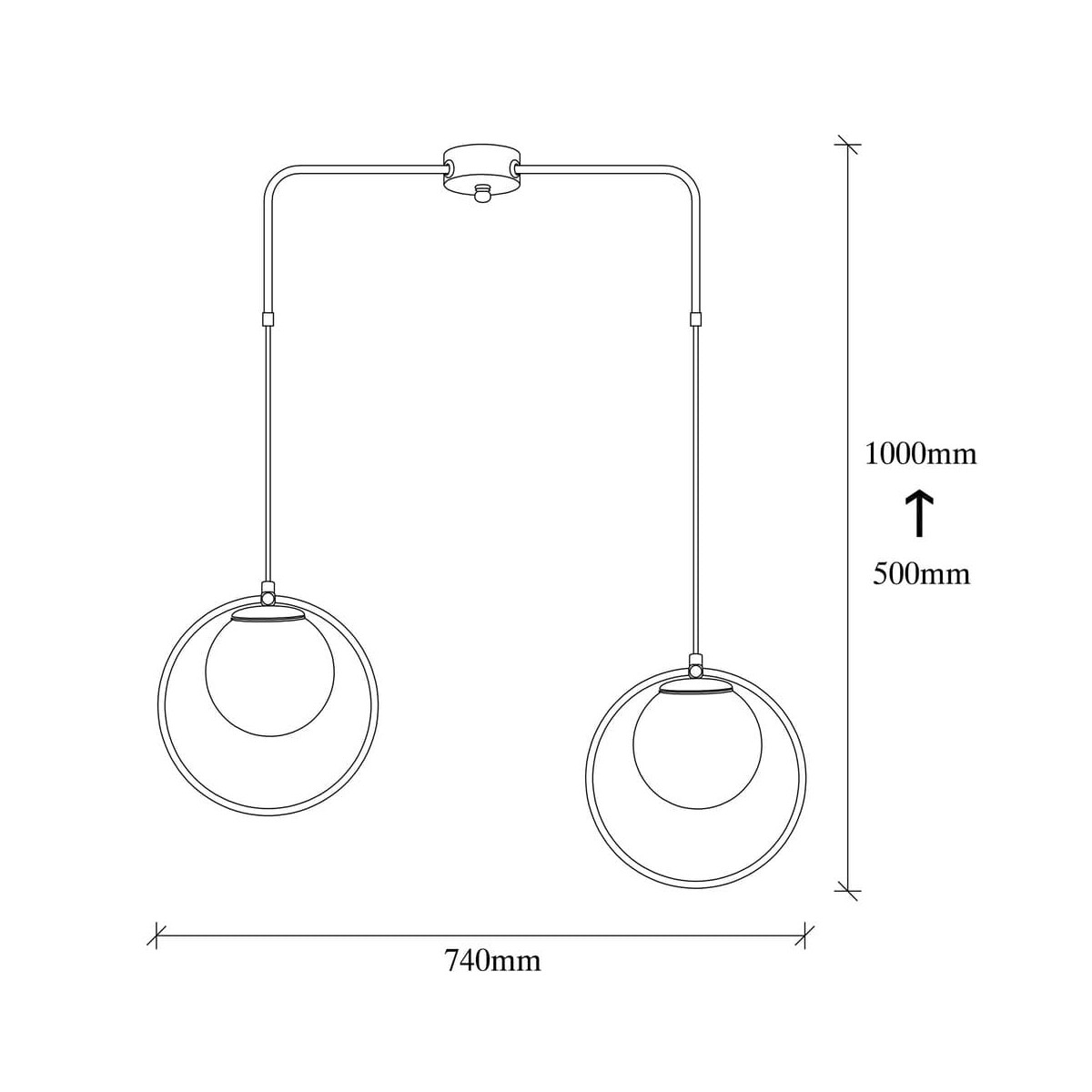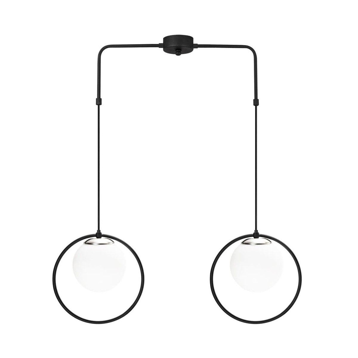 Suspension décorative avec câble de longueur réglable. Design moderne composé d'un abat-jour en verre blanc mat entouré d'un anneau en métal noir. Il permet de créer différentes compositions d'éclairage décoratif, en s'adaptant aux différents espaces, en réglant la hauteur de la lampe. Parfait pour les salles à manger, les salons et les chambres à coucher à la recherche d'un style d'éclairage différent. Pour ampoules E27, non incluses.