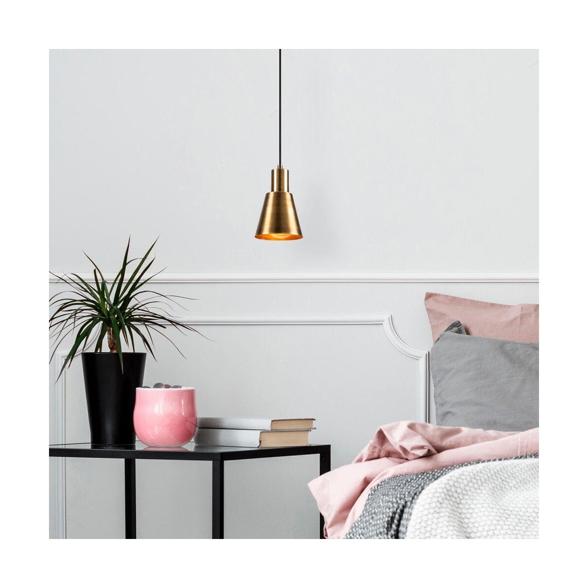 Suspension décorative au plafond de style industriel avec structure métallique en vieil or. La longueur du câble peut être réglée jusqu'à 90 cm, s'adaptant ainsi aux espaces et aux besoins de chaque pièce de votre maison. Ampoule E27, non incluse.