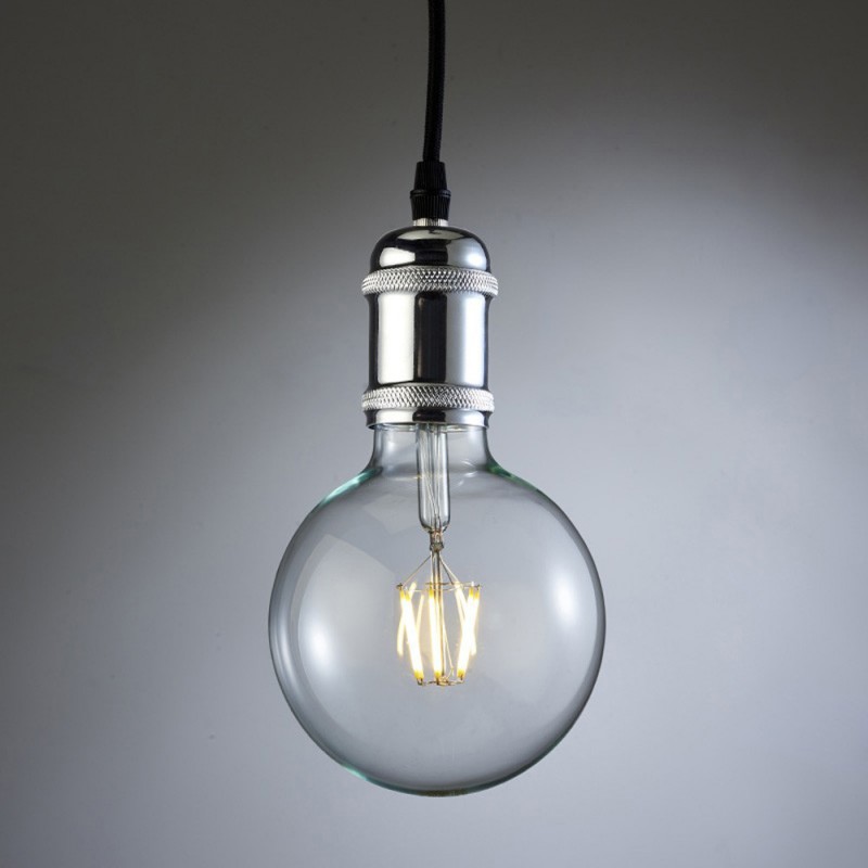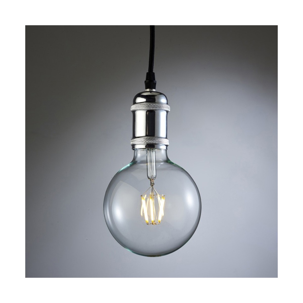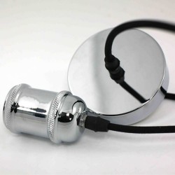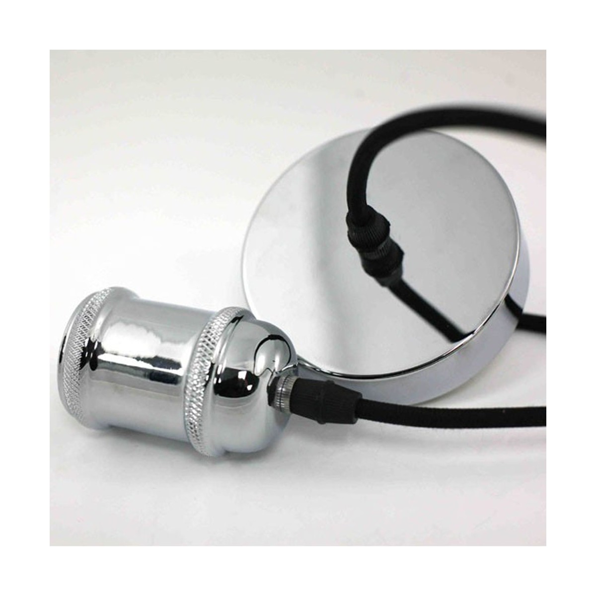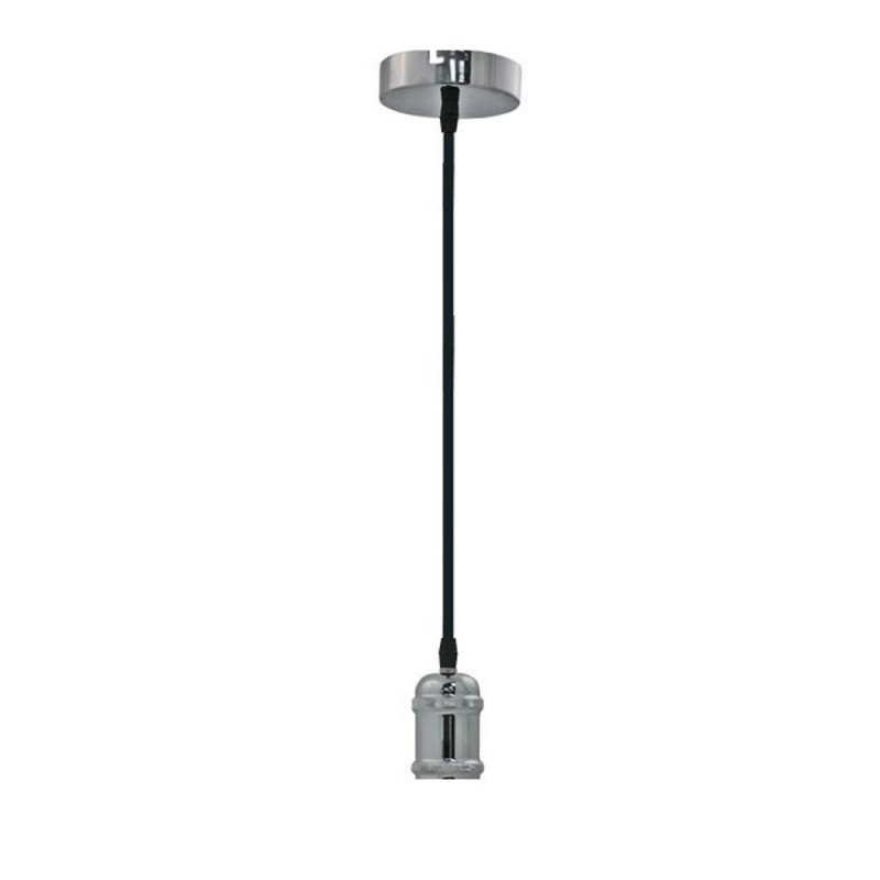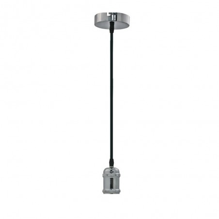 Support de lampe en métal chromé et câble textile noir (ampoule non incluse). Se combine parfaitement avec les ampoules à filament LED décoratives.