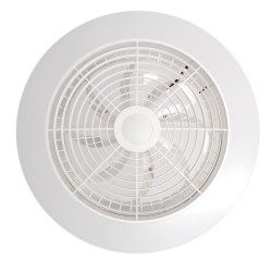 Ventilateur à LED RVB Moli pour les chambres et les salles. Donnez une touche originale à l'éclairage et à la ventilation de votre pièce avec ce ventilateur de plafond circulaire. Il est de couleur blanche et comporte des lames intégrées à l'intérieur. De cette façon, le ventilateur apporte un flux d'air concentré directement vers le bas. En plus de l'éclairage principal projeté depuis le bas du ventilateur, il dispose d'un éclairage RVB coloré projeté vers le plafond. Télécommande incluse pour contrôler toutes les fonctions du ventilateur. Cinq vitesses de rotation et fonction d'inversion hiver-été.